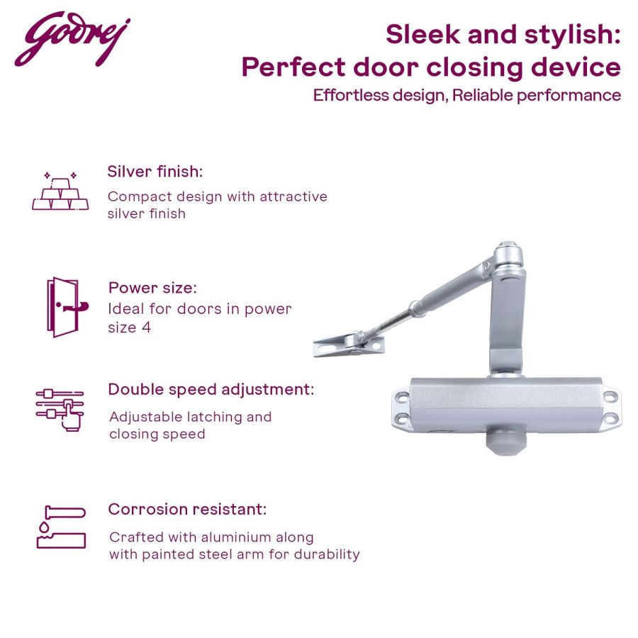 SLEEK & MODERN DESIGN – Enhance your door’s aesthetics with a compact and stylish silver-finish door closer. The sleek, space-saving design blends seamlessly with any residential or commercial setting.