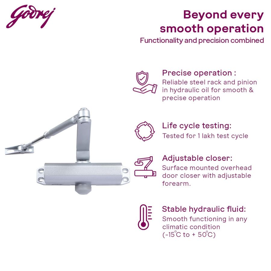 VERSATILE APPLICATIONS – Ideal for main doors, office cabins, hotels, hospital wards, air-conditioned rooms, and commercial buildings, this door closer ensures safety and convenience in various settings.