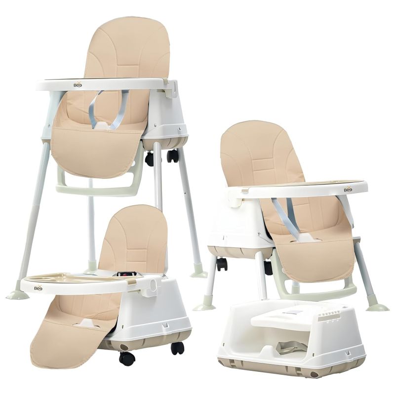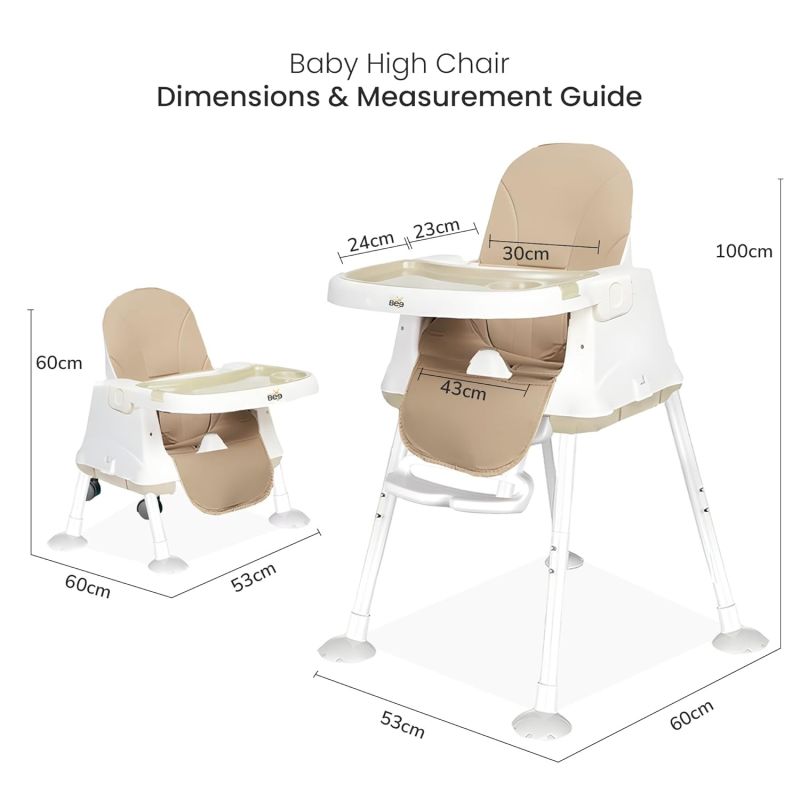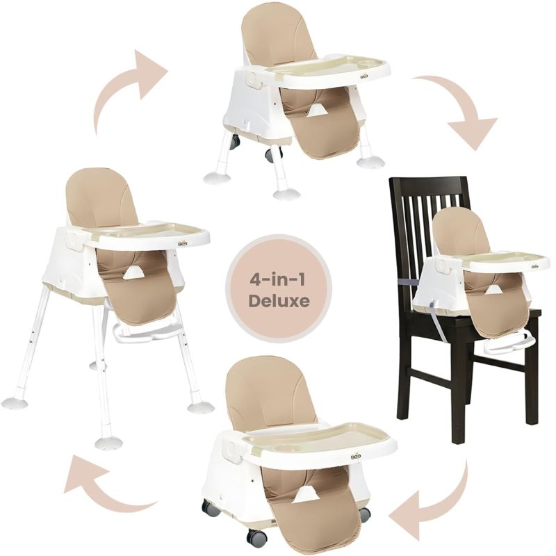 4 IN 1 Convertible High Chair: A stylish solution designed to grow with your child - from a Cushion High Chair to a Normal Chair, Booster Seat, and a Chair with Wheels. This adaptability offers prolonged usability as your child grows.