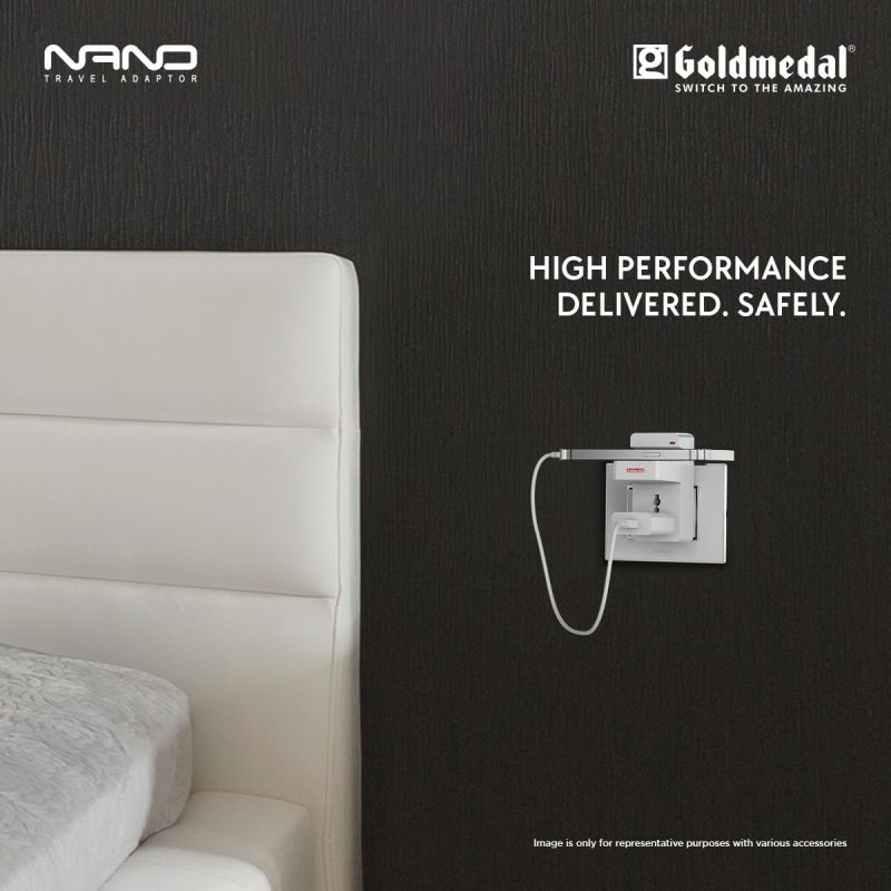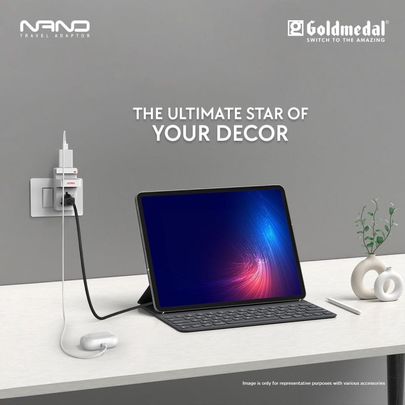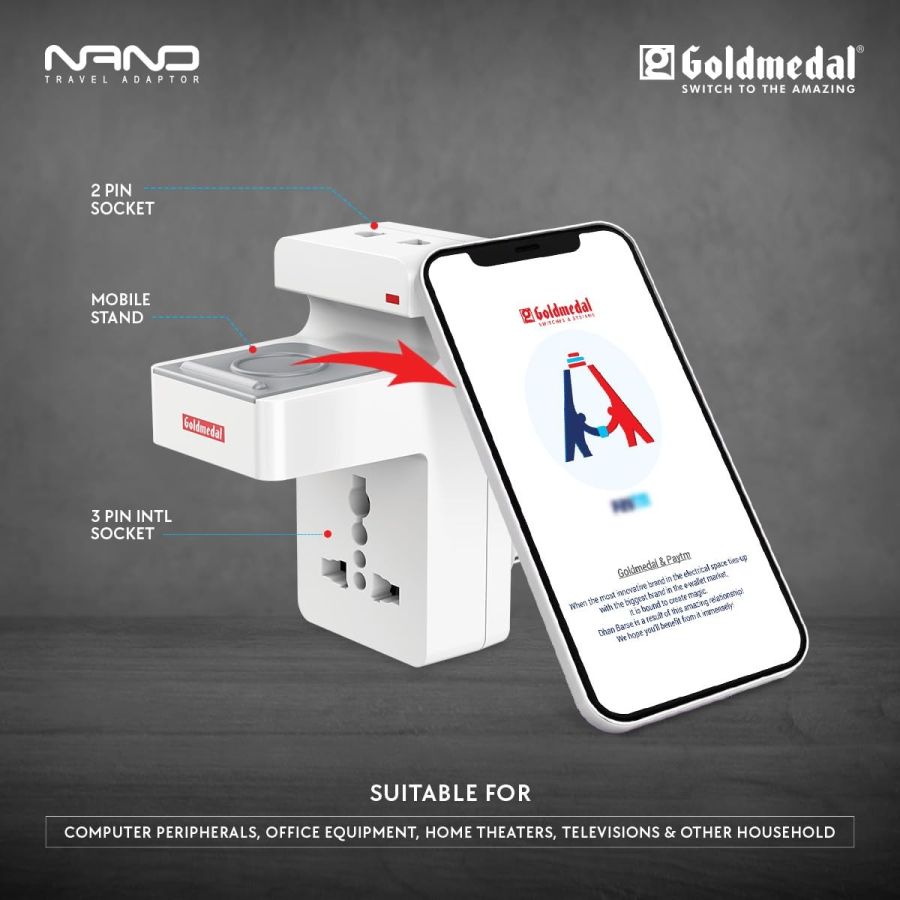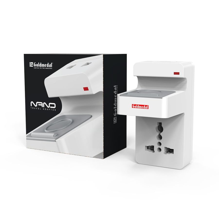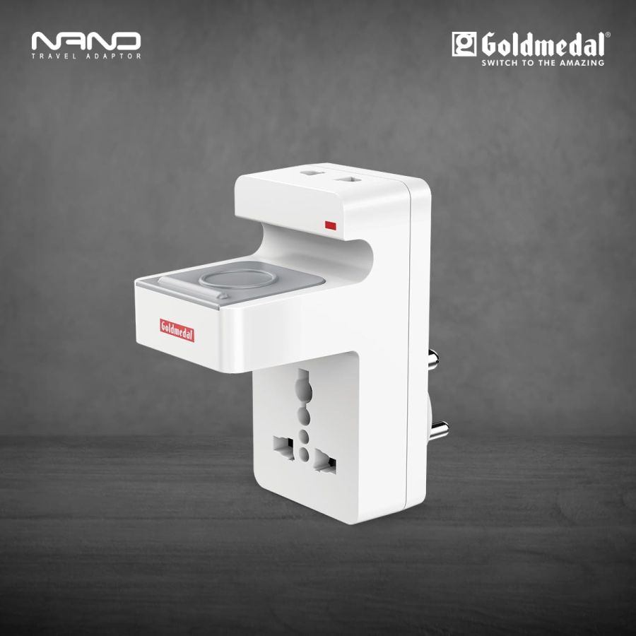 Goldmedal Nano 3 Pin Plug Travel Adaptor with Mobile Stand | LED Indicator | Multiplug for Home & Office | Supports 2-Pin & 3-Pin Plugs (Pack of 1) - White