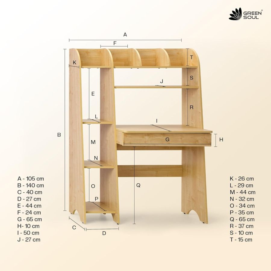 ???????????????????????? ???????????????????????????? ????????????????????: The wide surface top, two shelves and a tall cabinet provide ample storage and organization options. A generous total load capacity of 90 kg, including 45 kg on the table top make it a perfect table to study/work on while keeping it organised