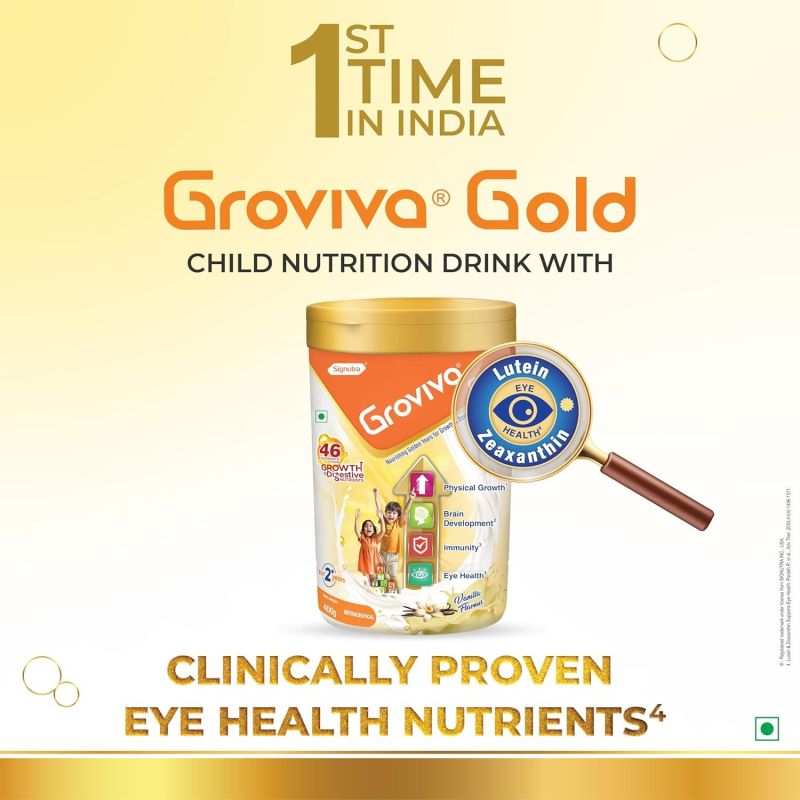 FIRST TIME IN INDIA a child nutrition drink Groviva Gold containing clinically proven Eye Health Nutrients - lutein & zeaxanthin (in the ratio of 2:1).