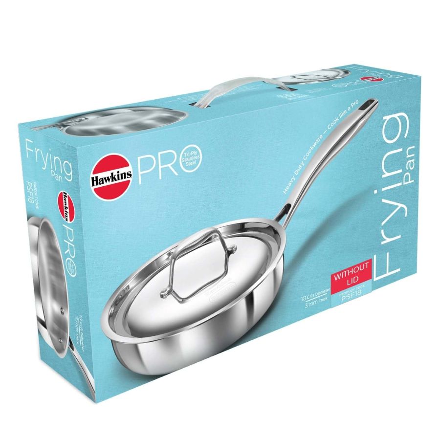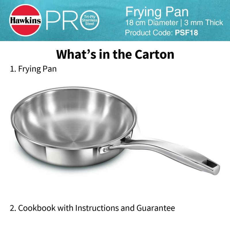 Hawkins Pro 18 cm Frying Pan, Triply Stainless Steel Fry Pan with Stainless Steel Handle, Silver (PSF18)