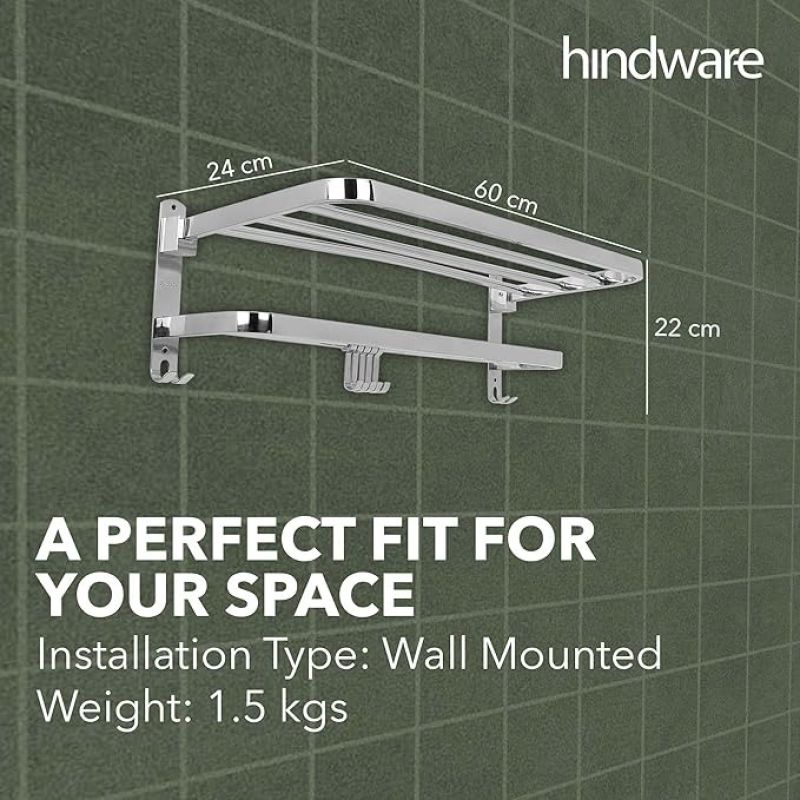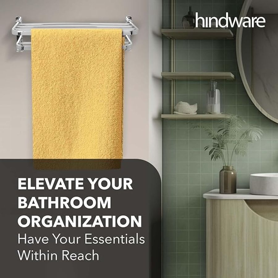 Hindware Bathroom Accessories-Stainless Steel 304 Grade Folding Towel Rack for Bathroom