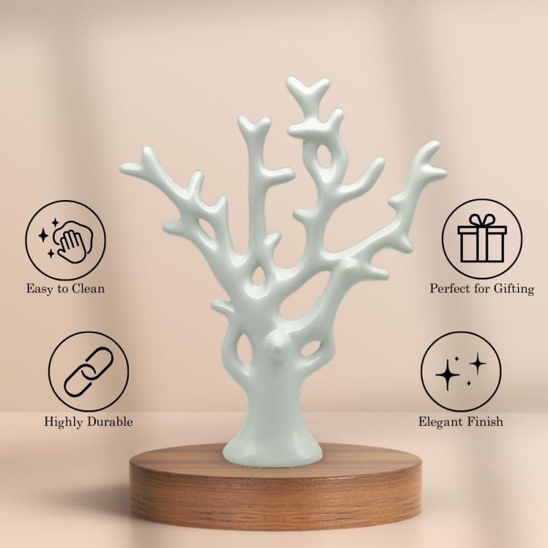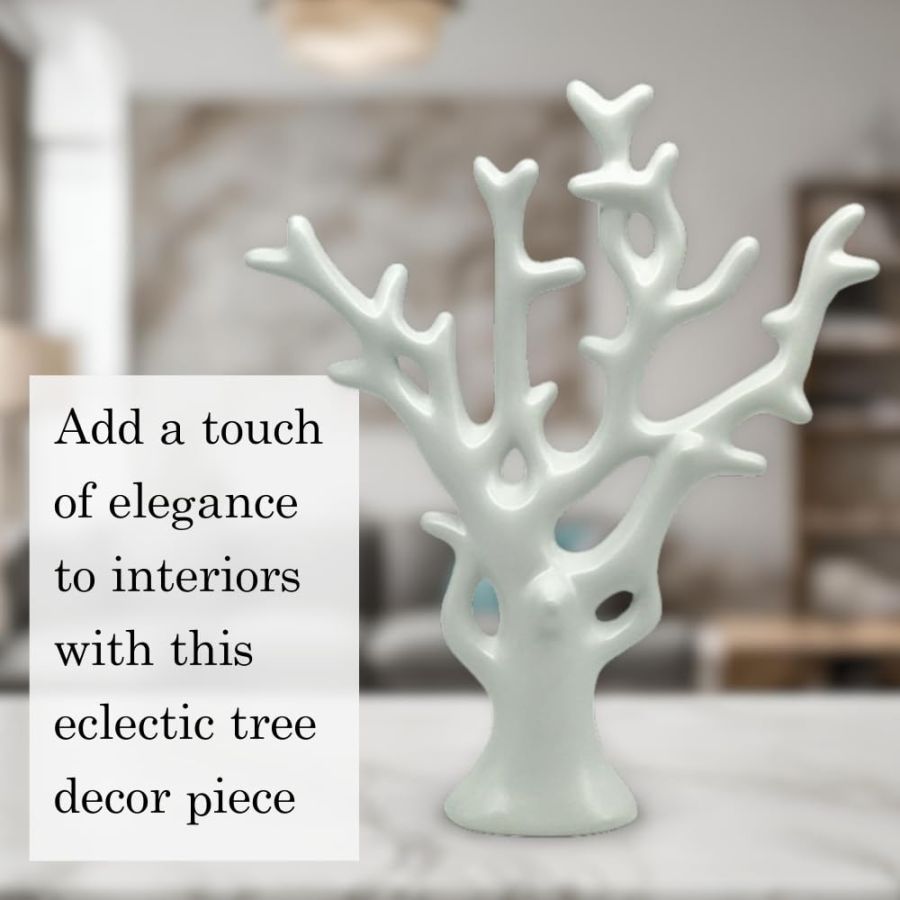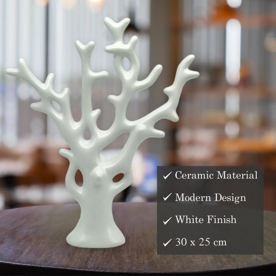 Home Decor White Fortune Tree Statue Ceramic Figures Showpieces for Home Decor - White