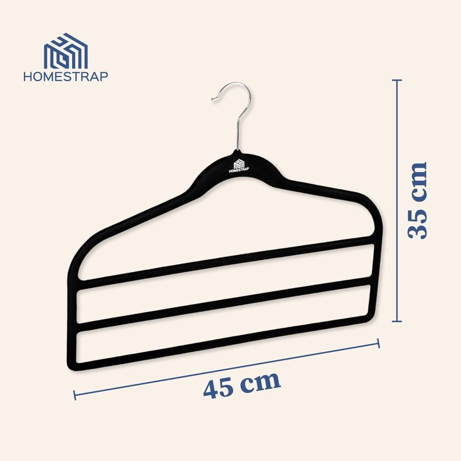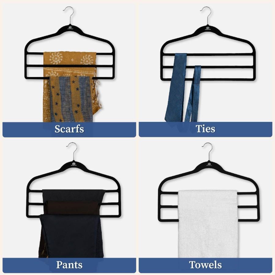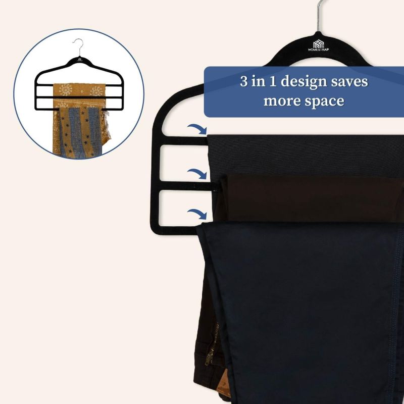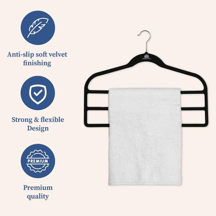 Homestrap Velvet Multi Layered Hanger (Pack of 1)| 3 Layer Space Saving Multipurpose Hangers for Pants, Clothes(Black)