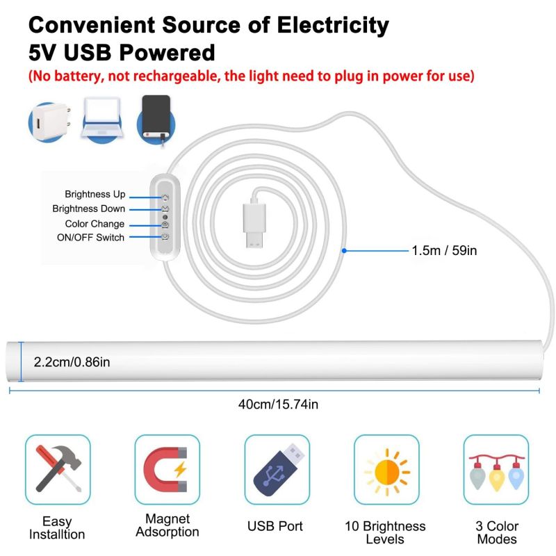 【Wide Applicable】Using it in the student dormitory, kitchen as cabinet light, or can be used to replace study lamps, desk lamps, wall lamps etc, and good for movable lighting, temporary lighting. use with desktop computer, tablet, laptop, Mobile charger, car USB port, usb plug; Outdoor use with a power bank