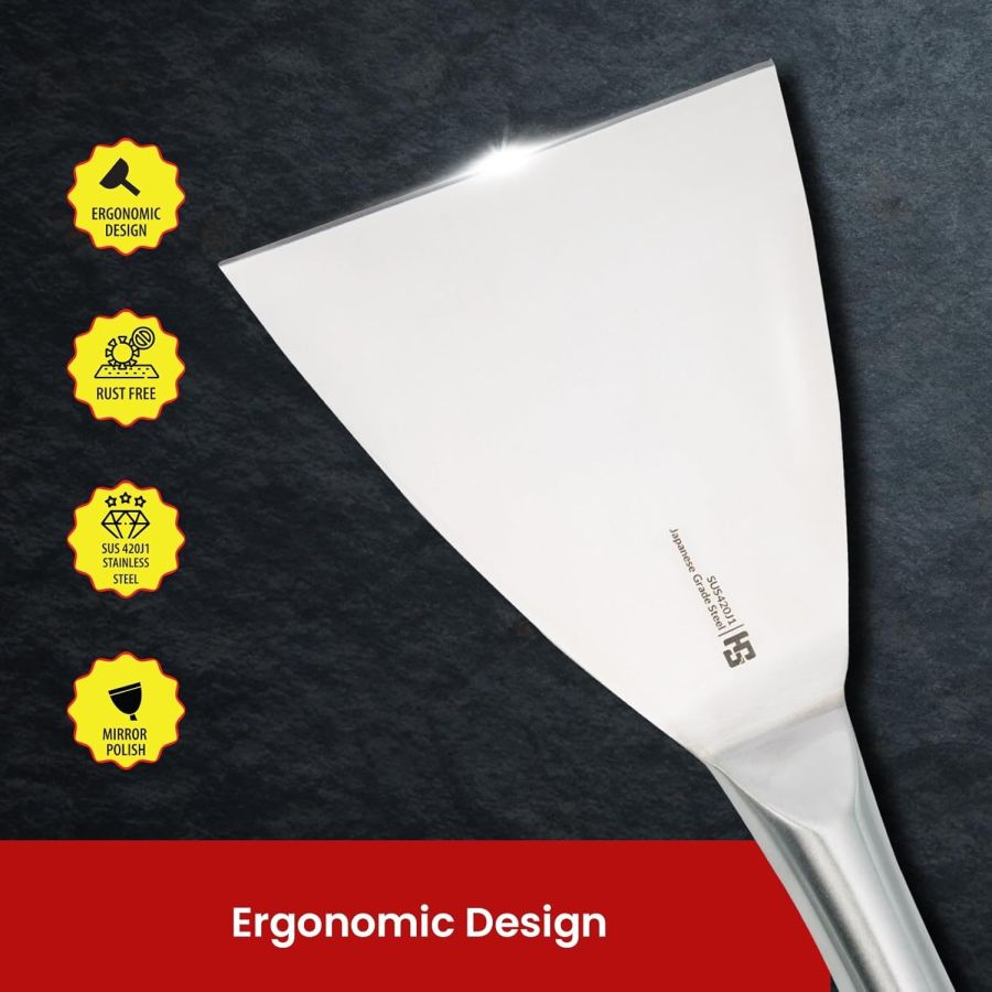 HS 5 Inch Professional Stainless Steel Spatula Scraper with Medium Handle, Stainless Steel Japanese Grade SUS420J2 for Home and Commercial Use