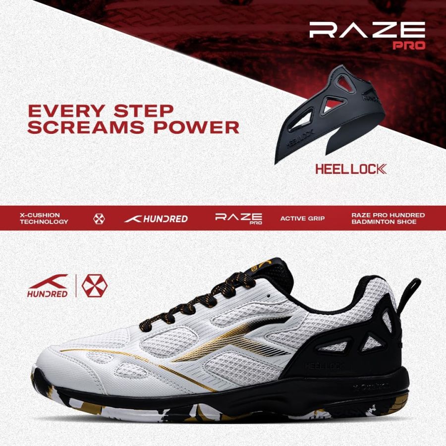 Hundred Raze Pro Badminton Shoes (Non Marking) | Also Indoor Sports | Lightweight, Breathable & Durable | X-Cushion | Active Grip Sole | Extended Heel Lock