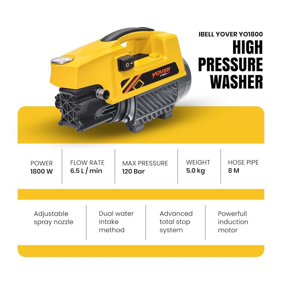 IBELL YO2800 High Pressure Car Washer for Home & Bike Cleaning, 2800W Induction Motor, 240 Bar, 12 L/min Flow, Portable Pressure Washer with 8M Hose & Spray Gun