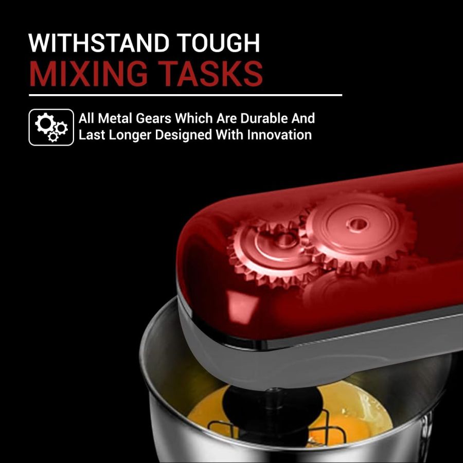 METAL GEARS FOR EXTRA DURABILITY: Built to take it all on with the durable and built-to-last metal gear construction, and multiple touchpoints around the mixer bowl for great mixing results.