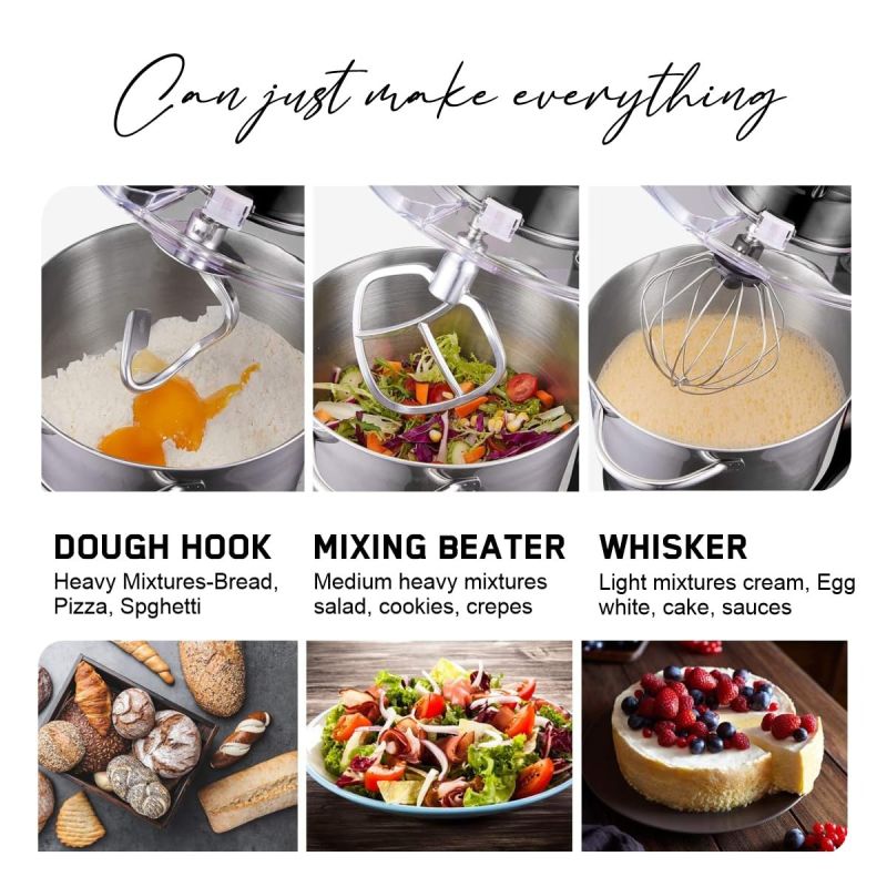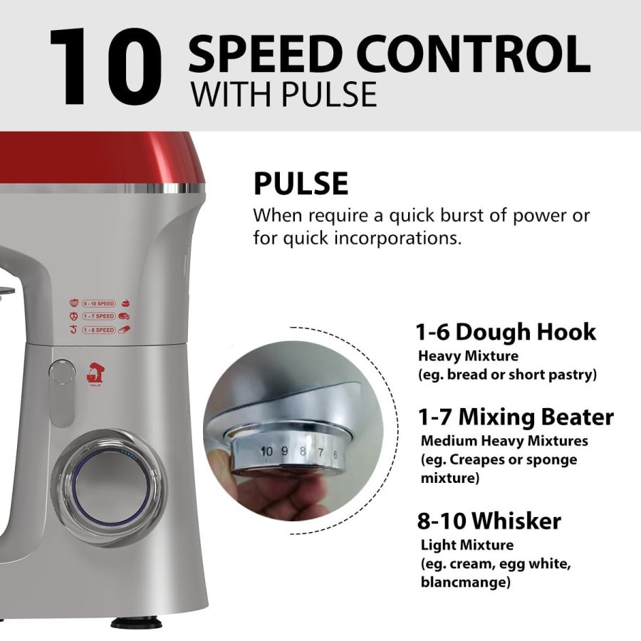 POWERFUL PROCESSING With 100% COPPER MOTOR: Mix Master Plus stand mixer comes with 1500 W heavy duty 100% pure copper motor. 8 speeds for nearly any task or recipe, from mixing ingredients together on the stir speed, to whipping cream you'll get thorough ingredient incorporation every time