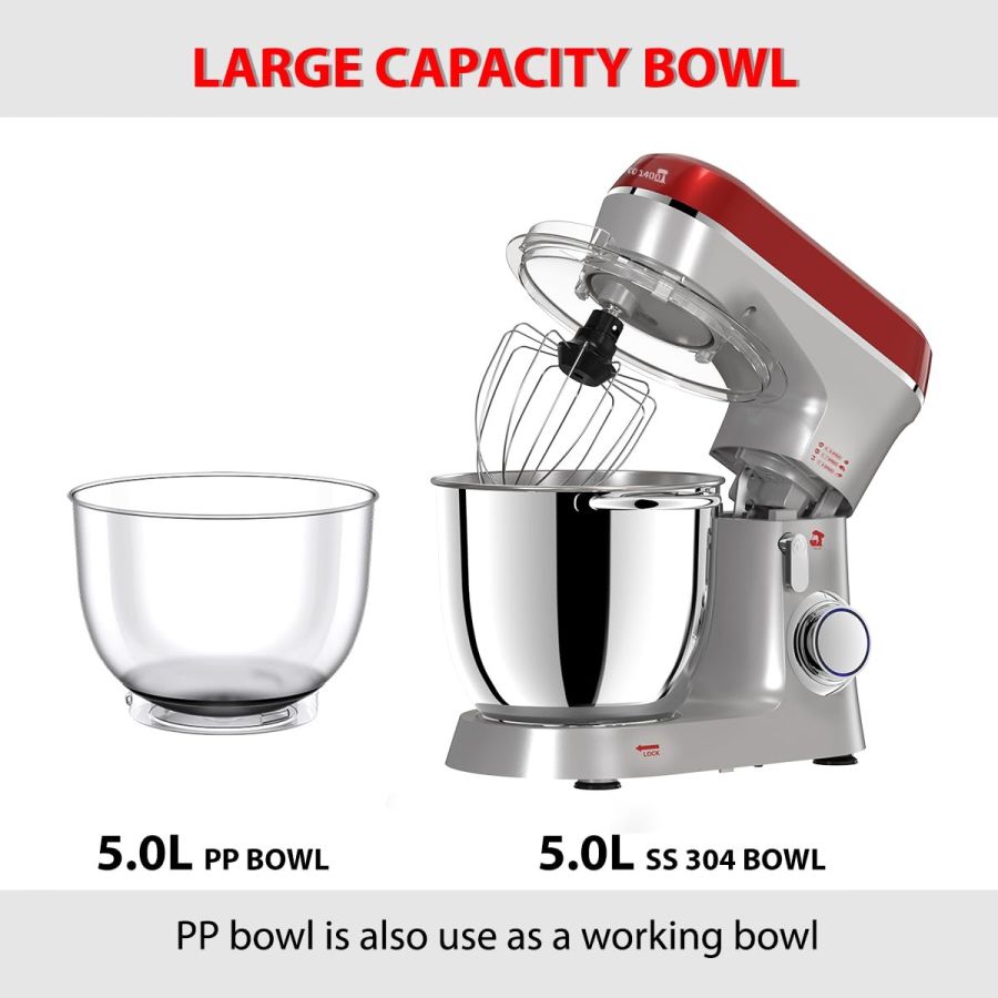 2 MIXING BOWL: This model of stand mixer comes with 2 mixing bowl of 5.3 L & 3 L capacity, making total capacity of working to 8.3 L. Now you don’t have to wash the mixing bowl every time you want to mix, beat or whisk another batch at the same time. Enjoy multiple baking session in 1 go.
