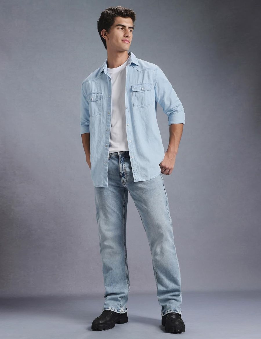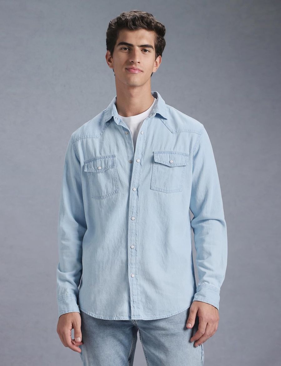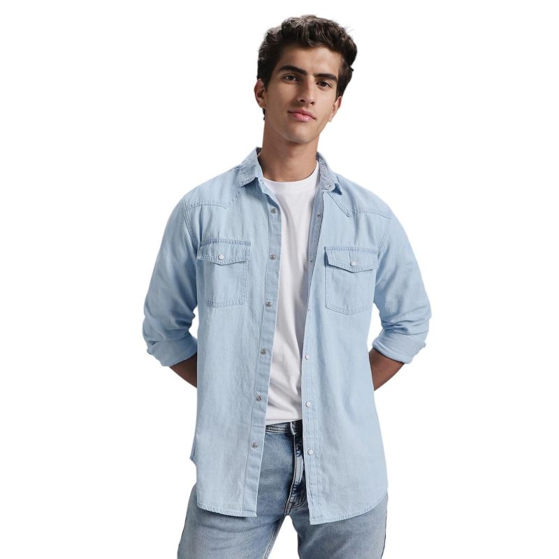 INKD Men's Full Sleeve Denim Shirt - Regular Fit | Double Pocket | Denim Shirts for Men | Men's Casual Shirts