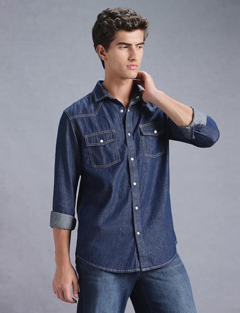INKD Men's Regular Fit Shirt - 100% Cotton | Casual Shirts for Men | Full Sleeve