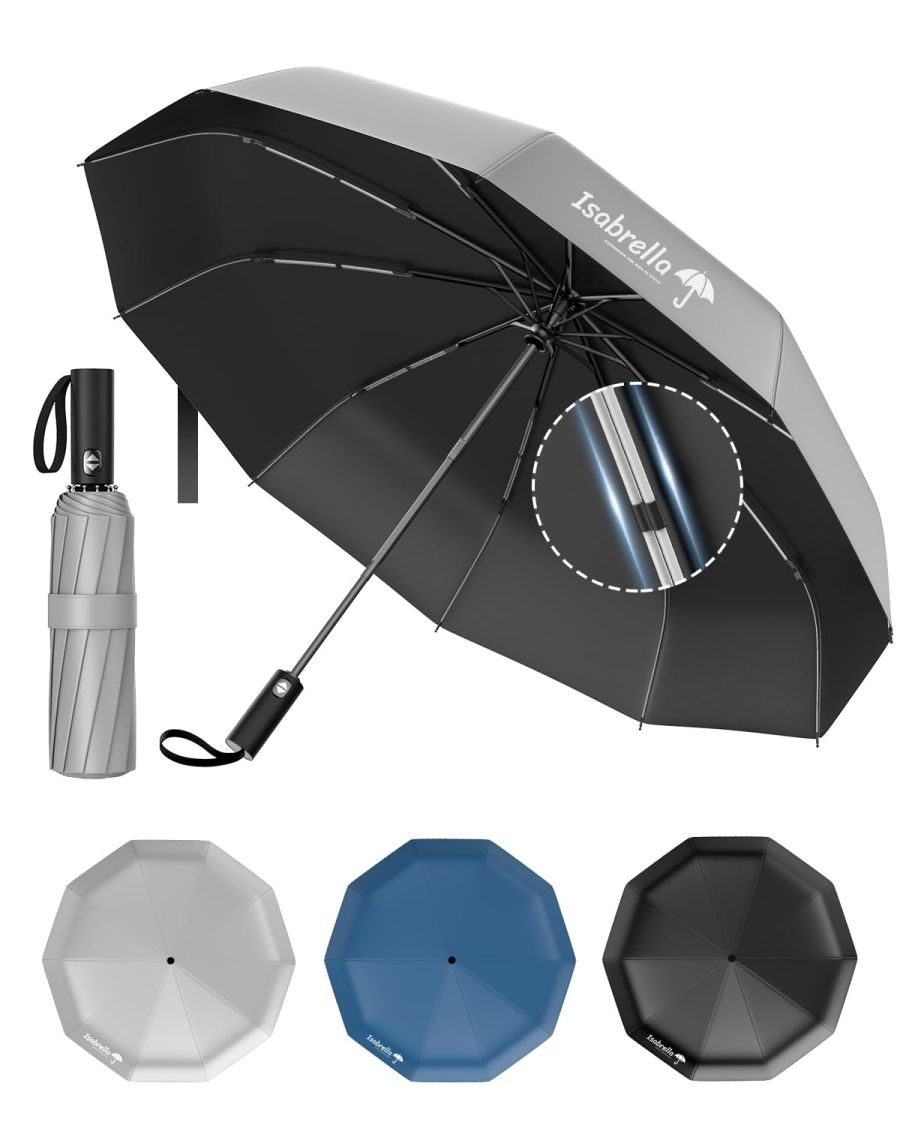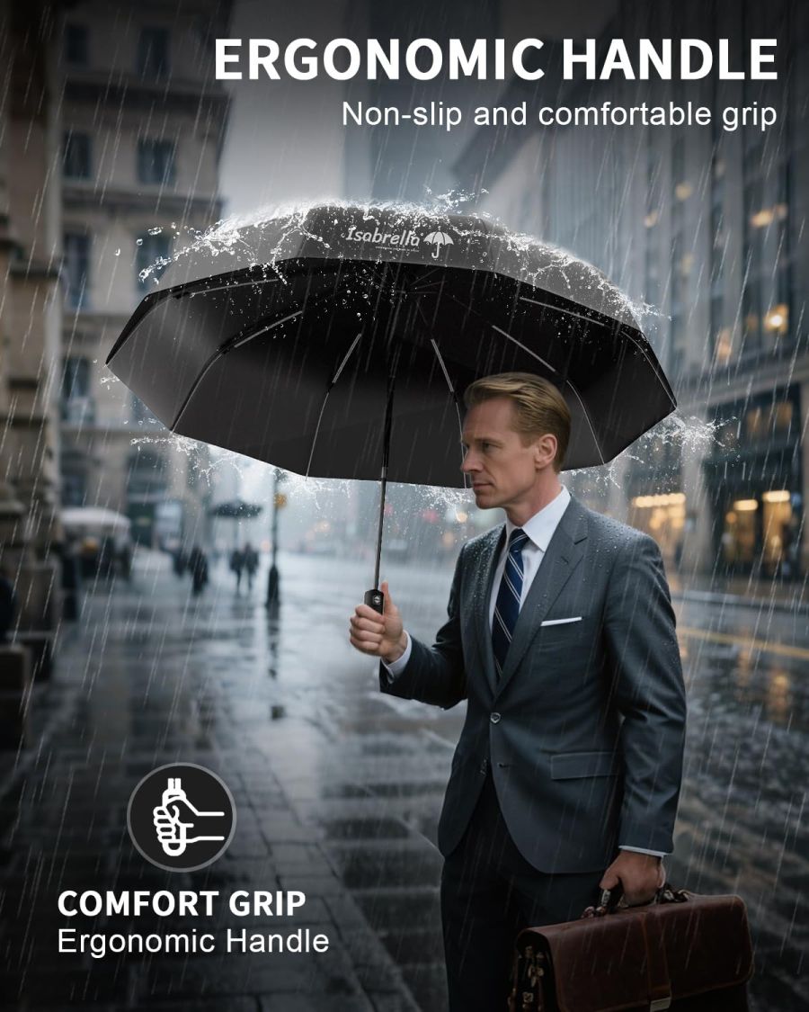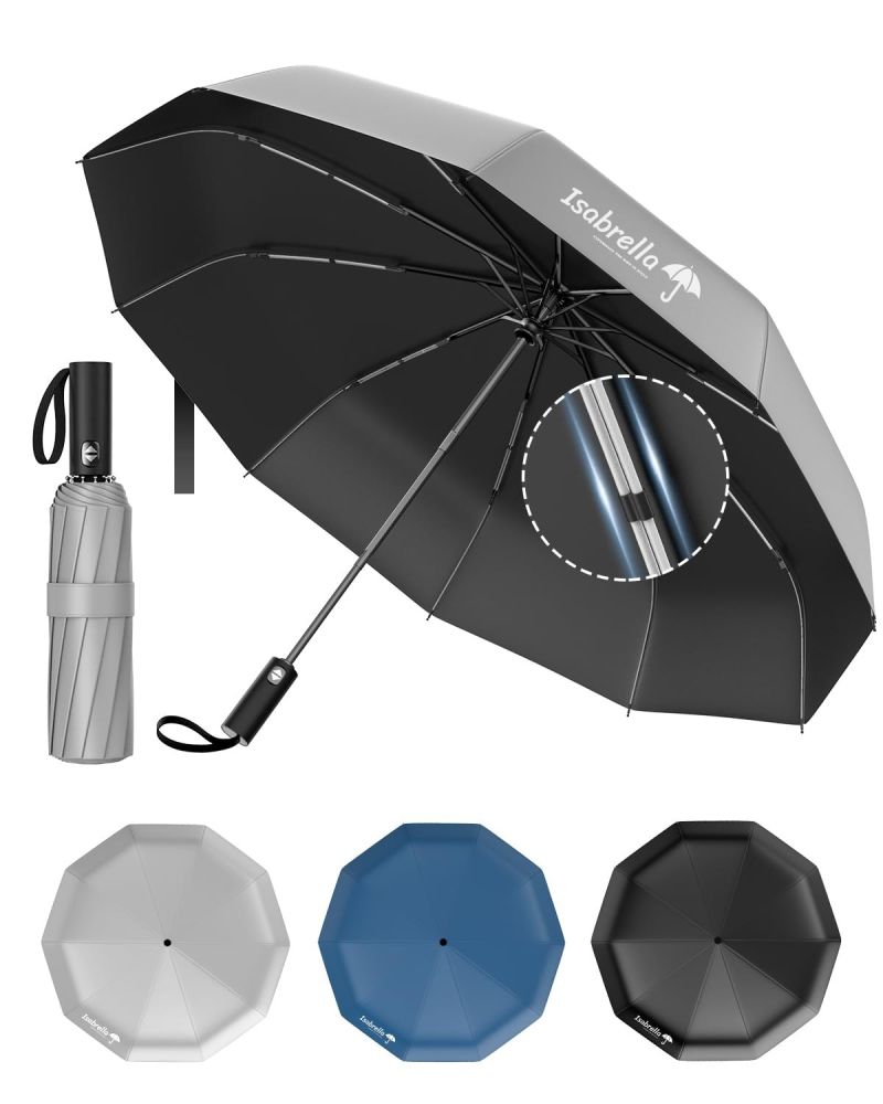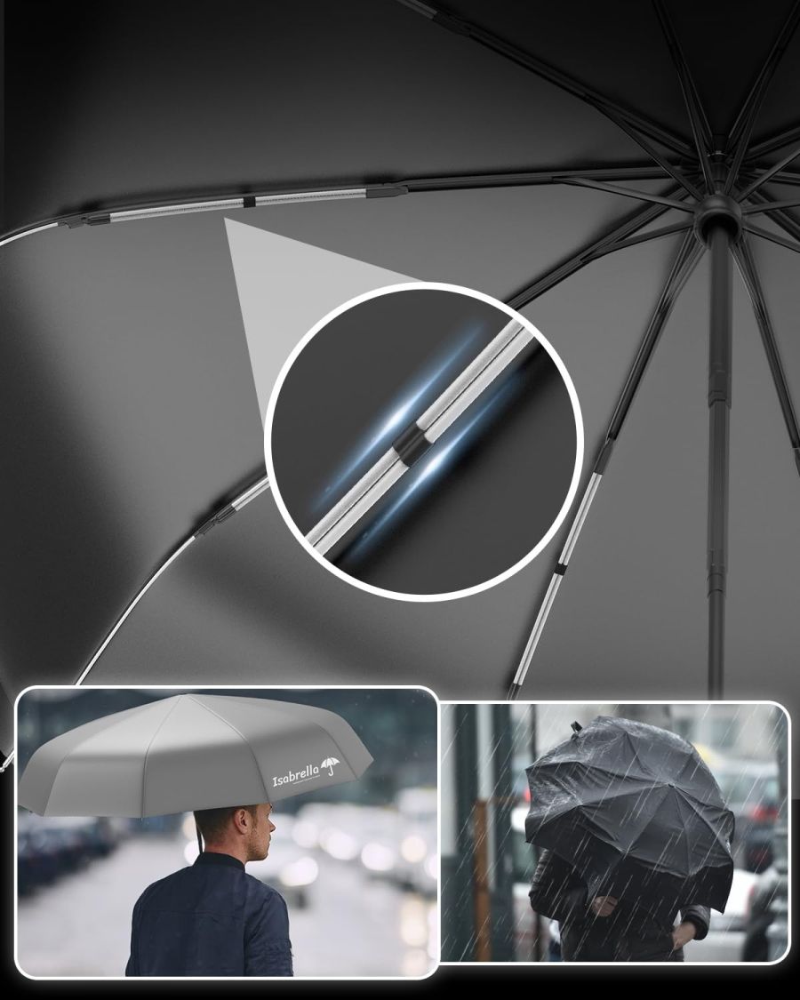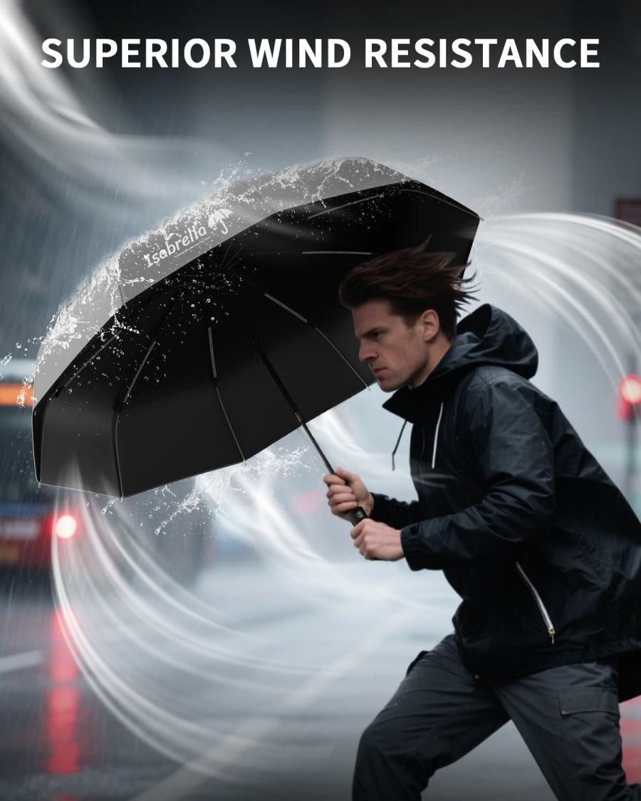 【☂️ Strict Quality Control 】 The ISABRELLA women's windproof umbrella is made of 12 reinforced double fiberglass ribs, making it durable and rust-resistant. The slightly curved ribs protect it from strong winds and prevent it from tipping over, even when folded 180°.