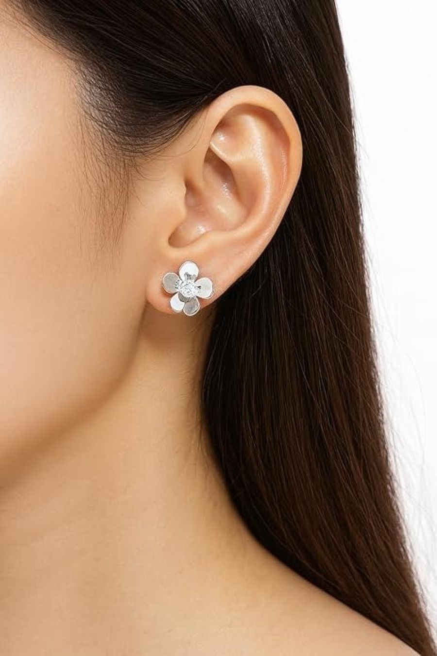 Jewellery stylish silver-plated flower stud Korian earring for women and girls.