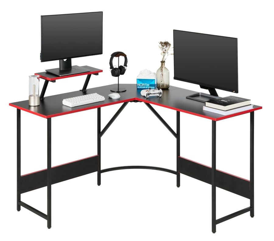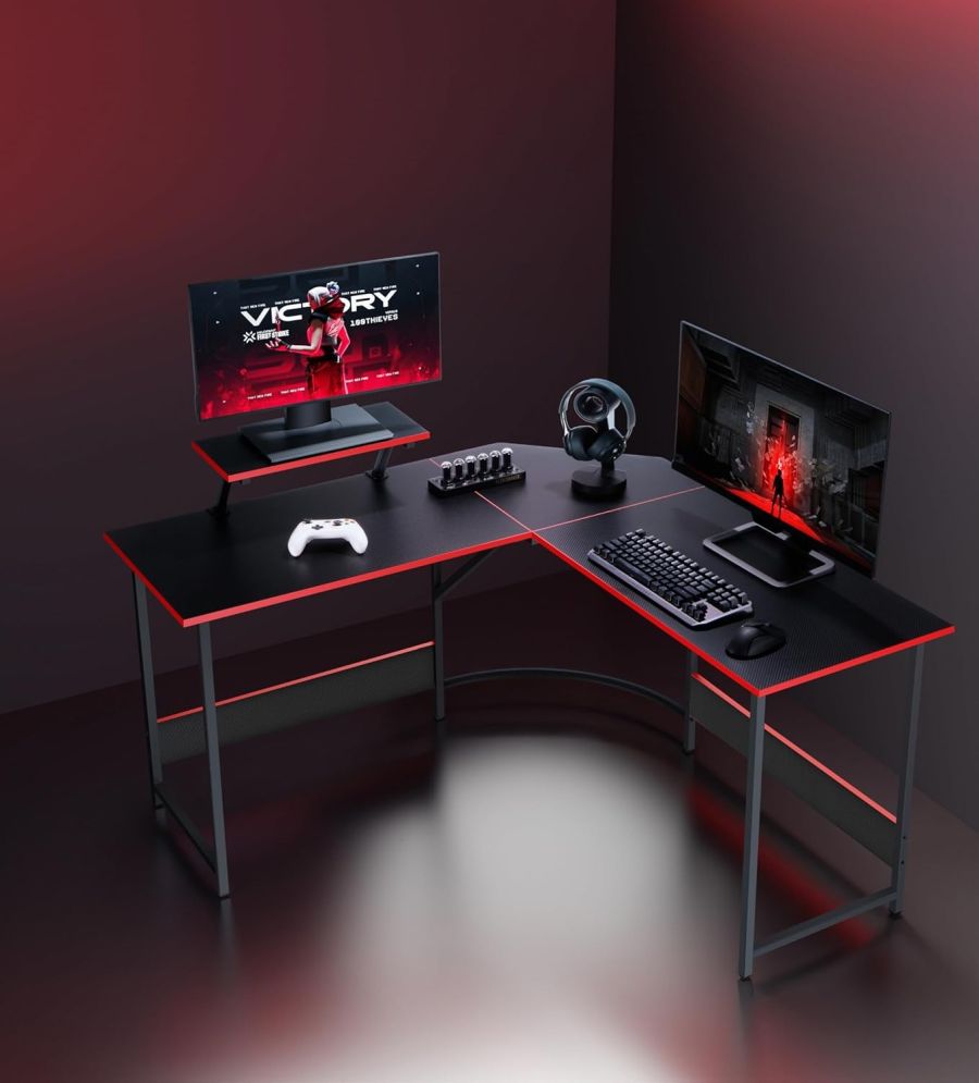 Versatile Corner Desk: This L-shaped gaming desk maximizes space and offers flexibility to create a personalized workspace, perfect for gaming or professional use.