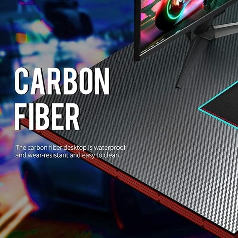 Carbon Fiber Surface: JIN OFFICE gaming desk designed for all game players. Carbon fiber textured desktop, smooth touch, textured appearance, scratch resistant, anti collision design, and it has better performance of waterproof and sweat proof, upgraded games and office experience.
