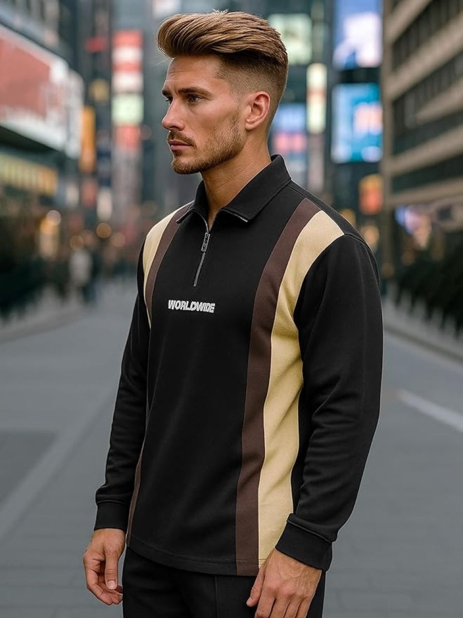 Jump Cuts || Mens || Printed || Polo Neck || Half Zipper || Full Sleeve || Cotton Blend || Polo T-Shirt