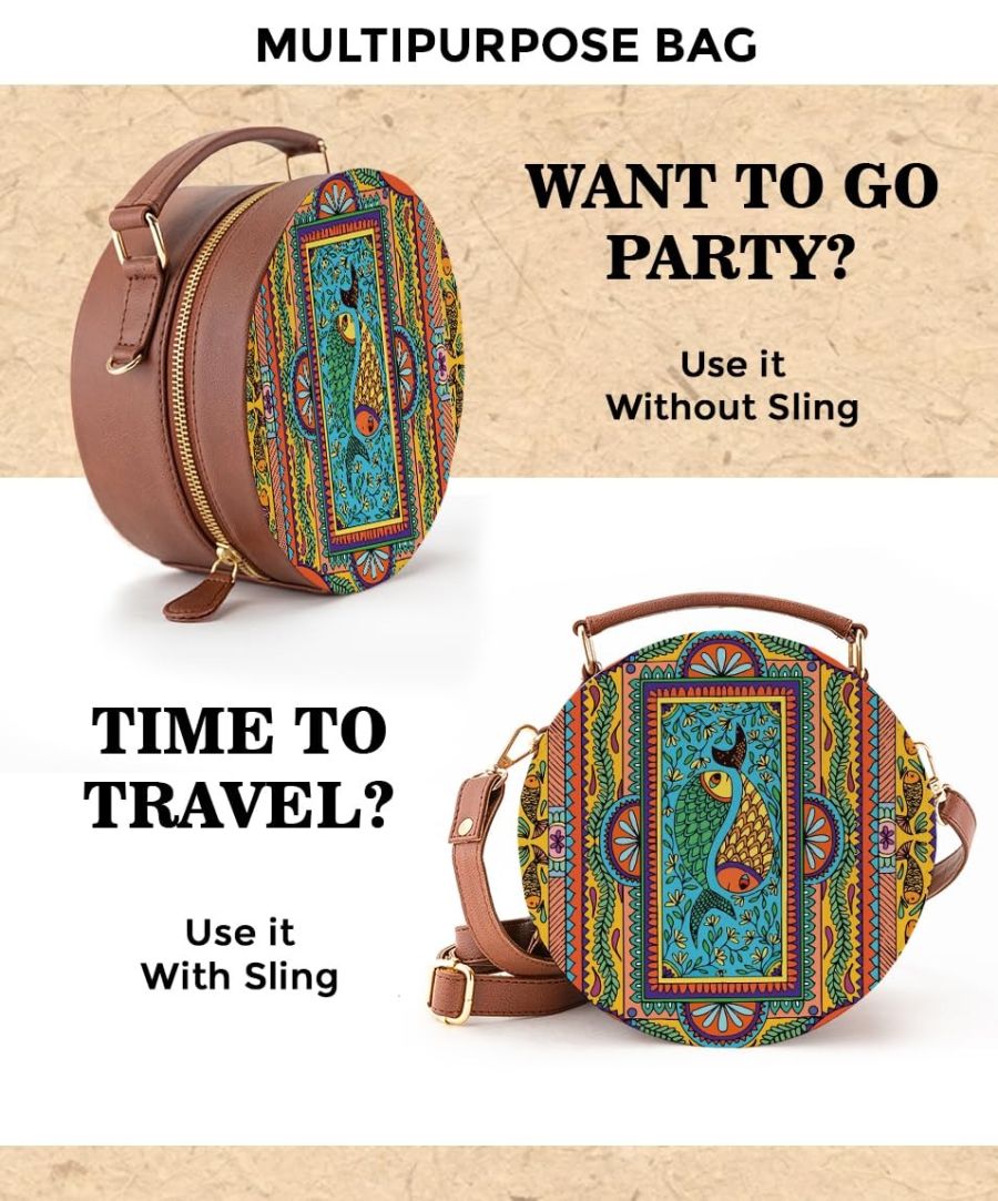 ✨Perfect for Gifting –The Kalankit Round Sling Bag is a thoughtful and stylish choice for Rakshabandhan gifts. Ideal for an elder sister, little sister, or sister-in-law, this very special gift fits perfectly in any occasion wheather its Birthday,Rakhi,Wedding,etc. With outer dimensions of 19x19x8.8 cm, it's just the right size for daily use.
