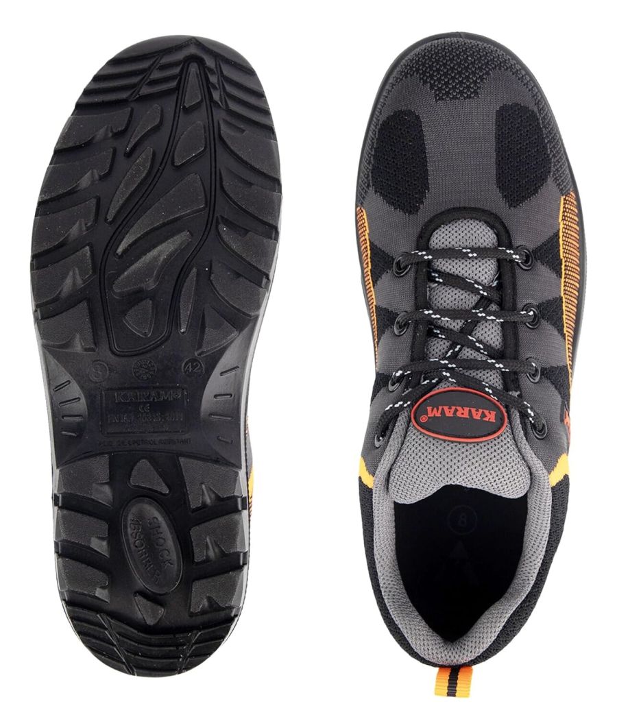 Metal-Free Shoe: KARAM FS210 safety shoe for men are 100% metal free shoe. They feature a composite or fiber toe cap that is equally strong in protecting feet and reduces the weight of the safety shoe.