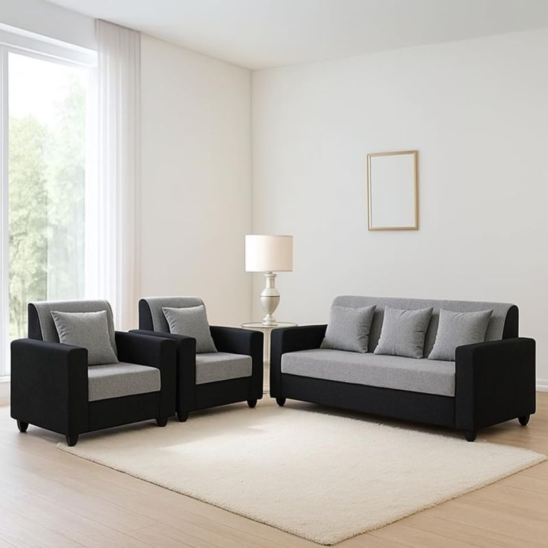KENDALWOOD Furniture 5 Seater Fabric Sofa Set for Living Room Furniture | 3+1+1 Sofa Set for Home & Office | Fabric Color:- Grey-Black | Pre-Assembled