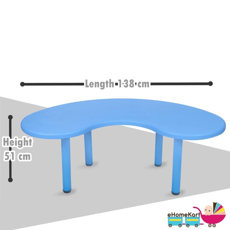 Kids Moon Table - Half Round Moon Shape Plastic Study Table for Kids at Home or School - Perfect for Indoor and Outdoor - Blue, L137cm x B76cm x H 51cm