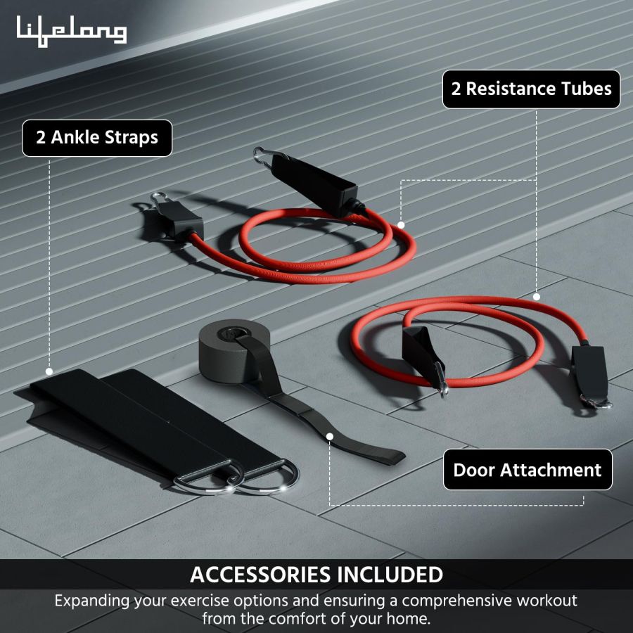 COMPLETE WORKOUT ACCESSORIES INCLUDED: This home workout equipment set includes 2 resistance tubes, ankle straps, and a door anchor—giving you multiple ways to train strength and tone your core.