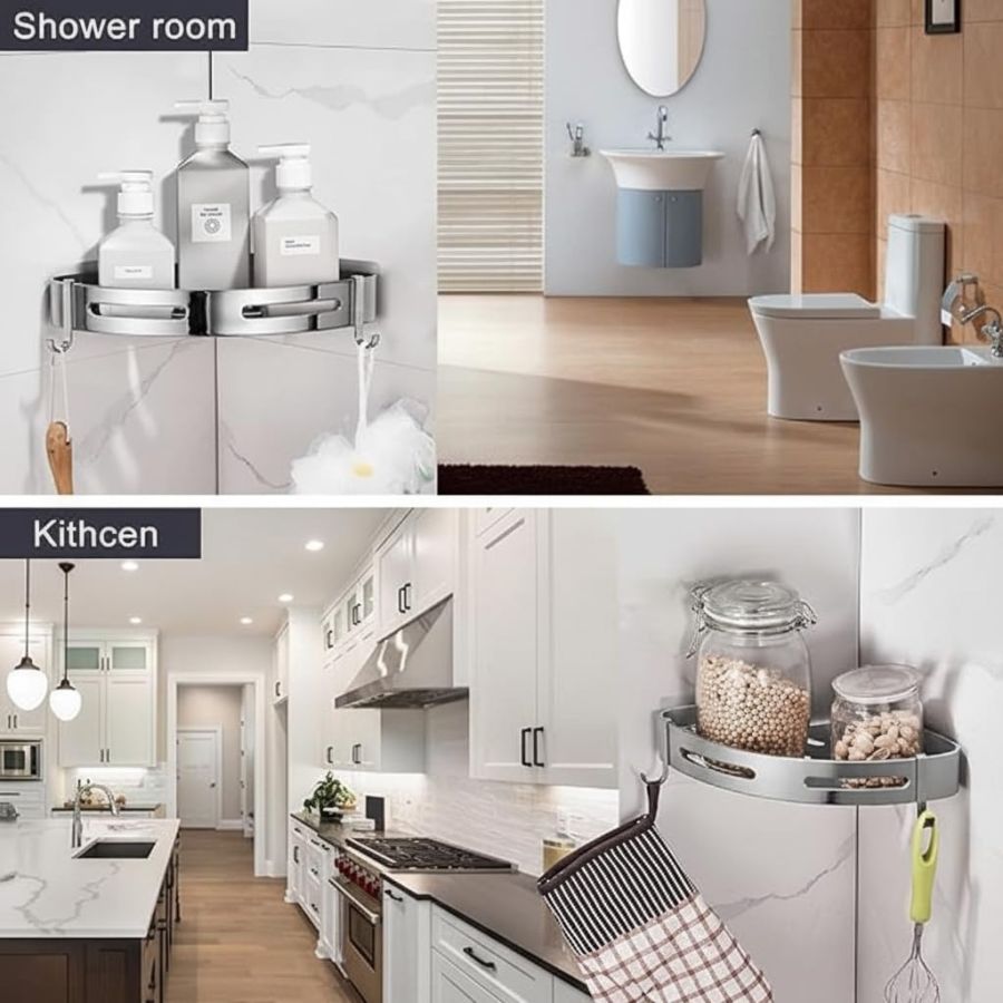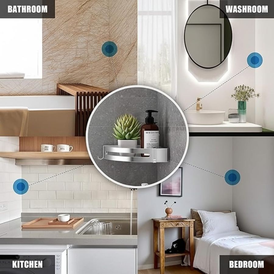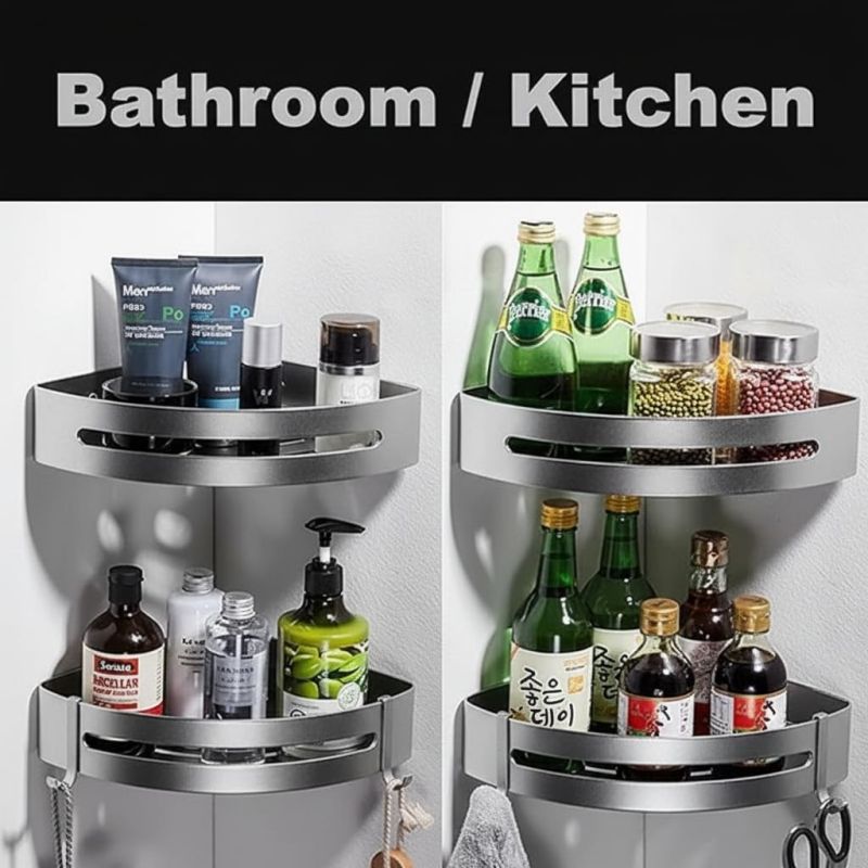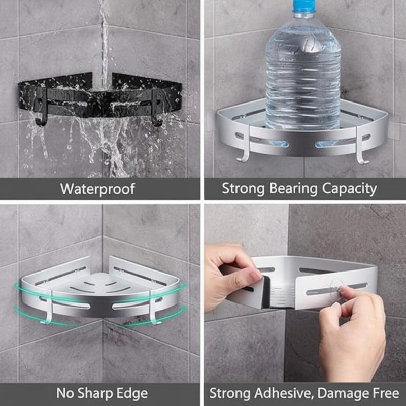 Light Luxury Triangle Corner Storage Rack | Alu Metal Tripod with Suction Cup | Punch‑Free Bathroom Organizer for Shoes, Drying and Cleaning | Polymer & Aluminum Construction | Single Layer