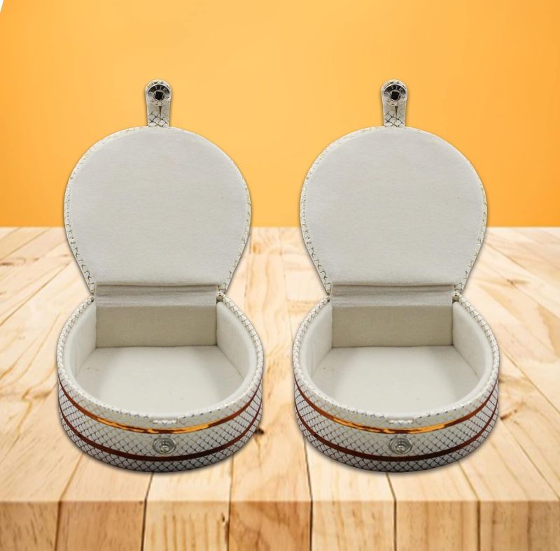 LUCES PU Leather Cosmetic Jewellery accessories Small Round Bangle Box Ring Earrings Studs Box Necklace Wardrobe Organizer for Women Pack of 2 (Cream)