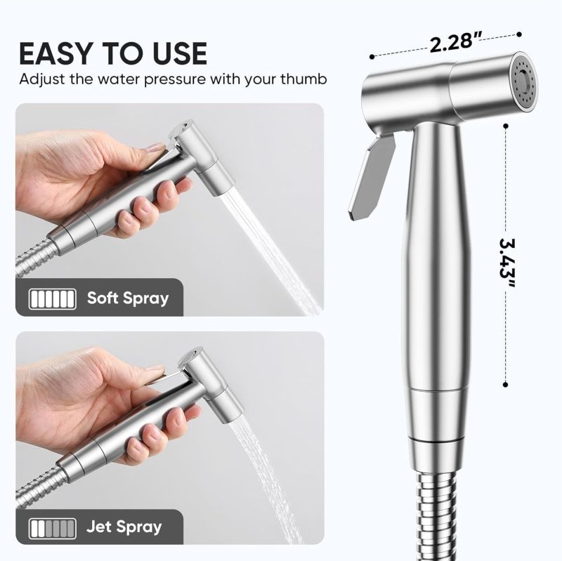 Marcoware Stainless Steel Health Faucet Set for Bathroom/Jet Spray Pipe for Toilet Shower Faucet, Silver, Brushed Finish