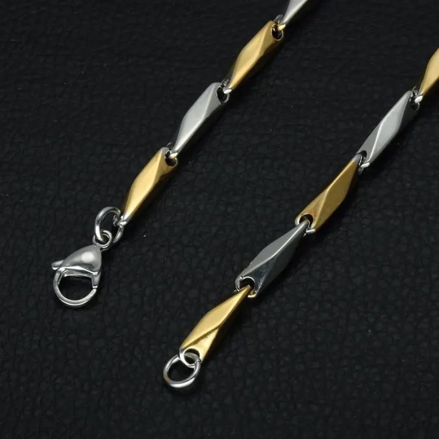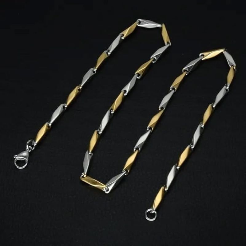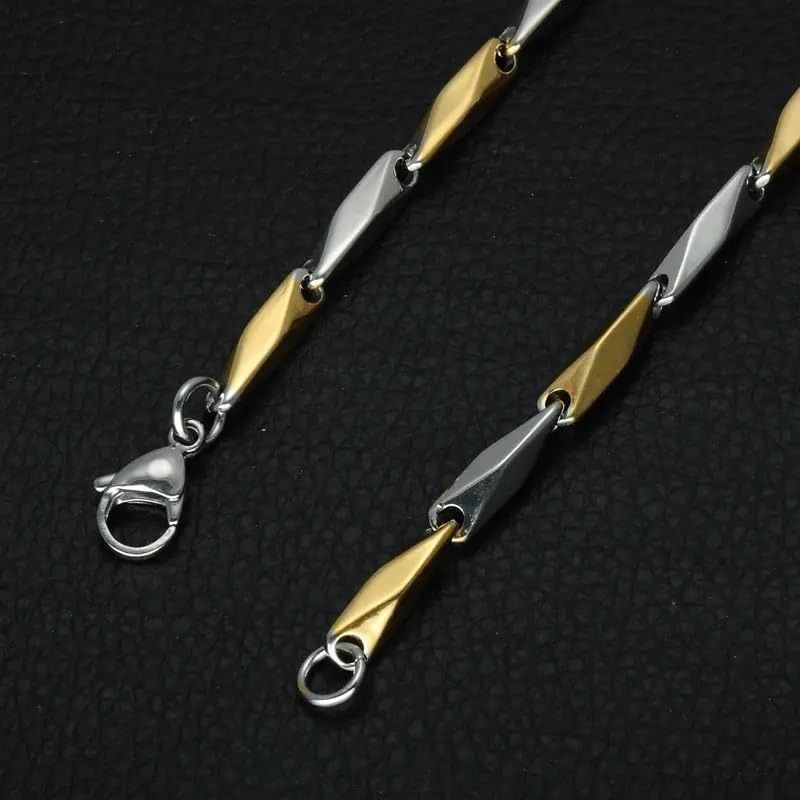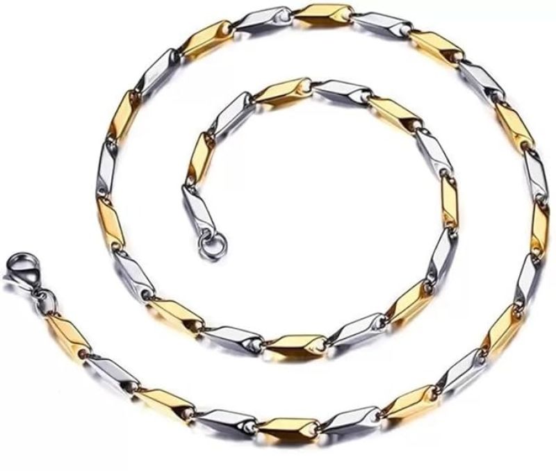 Package: 1 chain fancy chain for pendant for men in gold plated with silver diamond look jewellery for men; valentine gifts pure steel Chain for men boys boy friend Stylish design daily wear chains latest design chains mens chain gold plated,mens chain gold latest design platinum chain for men golden stylish latest design designer daily use casual wear