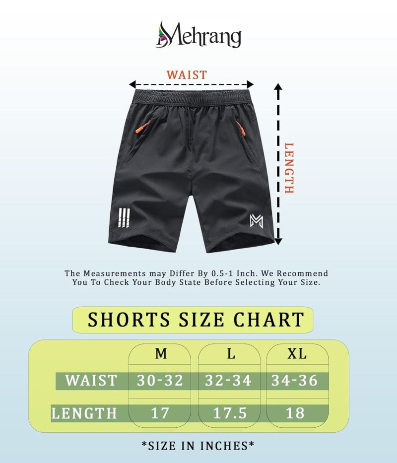 Mehrang Men's Ourdoor Comfort Fit Sports Shorts with Pockets | Quick Dry Workout Shorts for Men Gym Yoga and Running