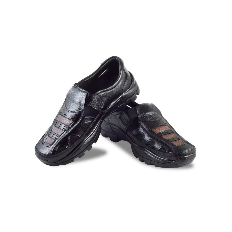 Men's Black & Brown Leather Sandals | Elegant Formal Look with Long-Lasting Comfort | Ideal for Office & Outdoor Use