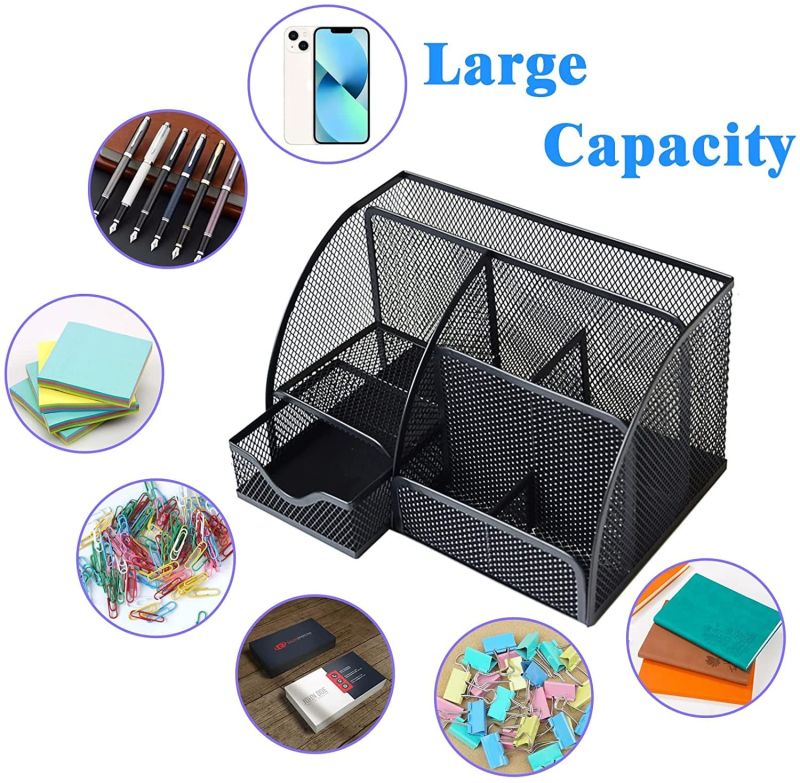 Merayo Desk Organizer Pen Stand For Study Table Stationery Organizer Metal Mesh Office Organizer Pen Holder - Black