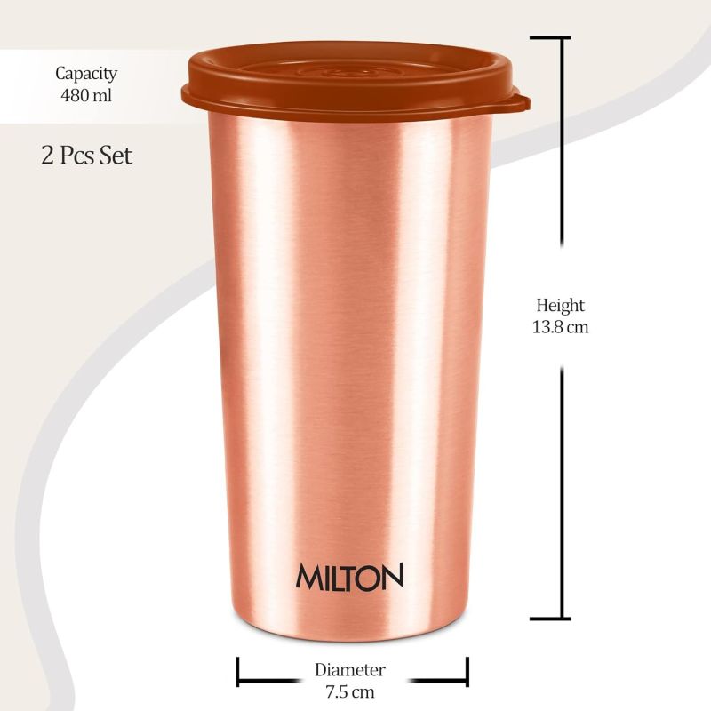 Color: Copper; Material: Copper; Package Contents: 1 - Piece Copper Tumbler (480 ml); Product Dimension in cms (L x W x H) (7.5 x 7.5 x 13.8)