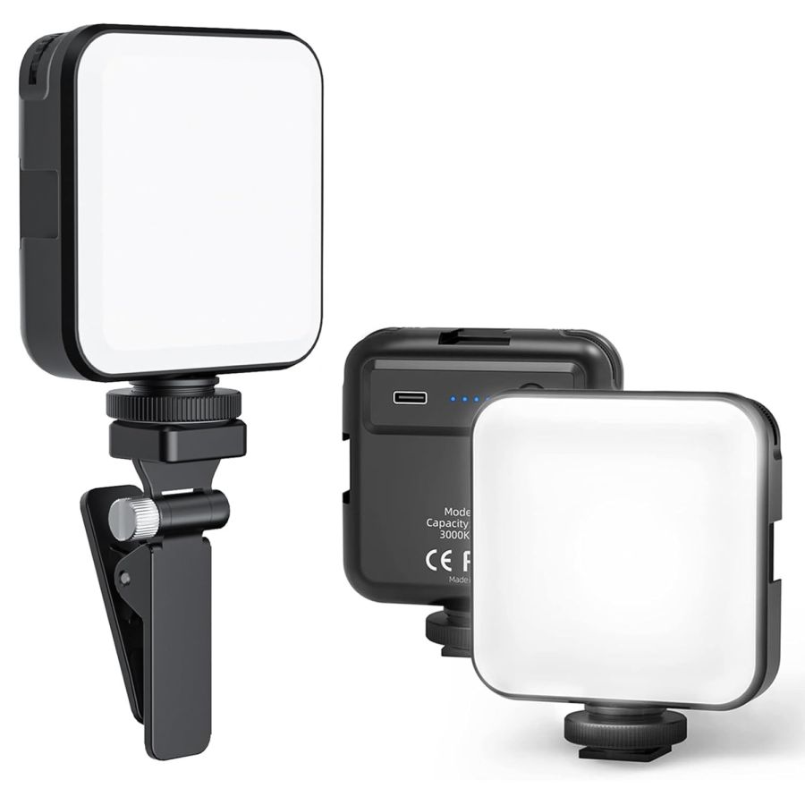 [Video Conference Lamp with clip]-- The video light comes with a clip, the clip can be easily clipped in many places such as mobile phones, computers and tablets, and the angle of this clip can be adjusted arbitrarily 180°. The clip is built in non-slip pads, So it doesn't scratch your phone and computer and clips it stably to your phone and computer.It fills the light conveniently for zoom meeting, video/photo shooting and live streaming.