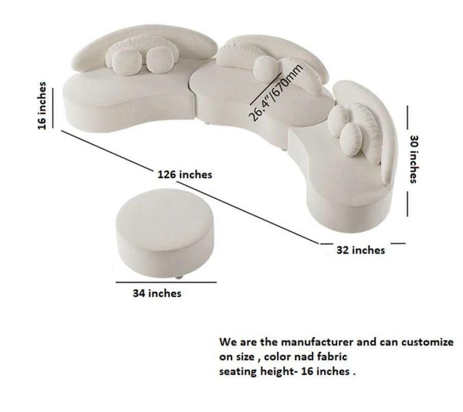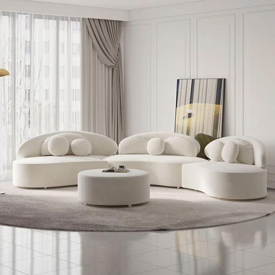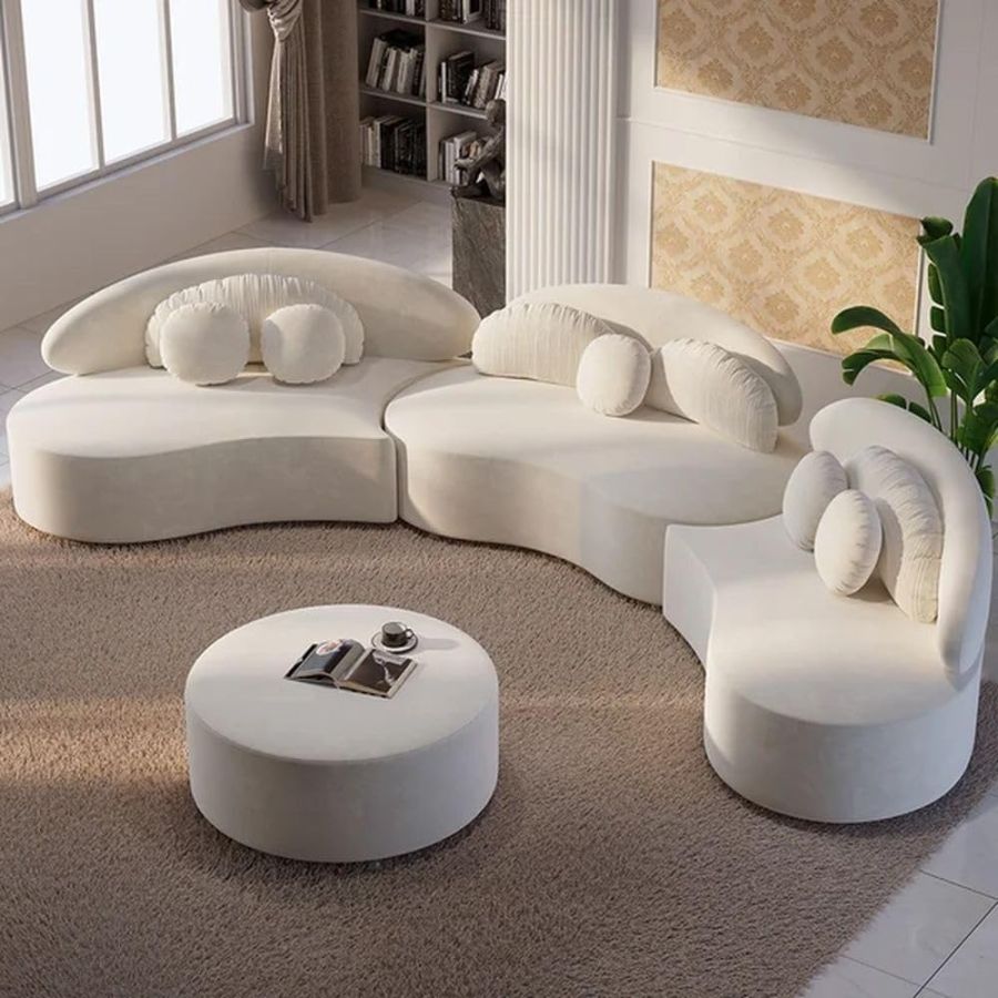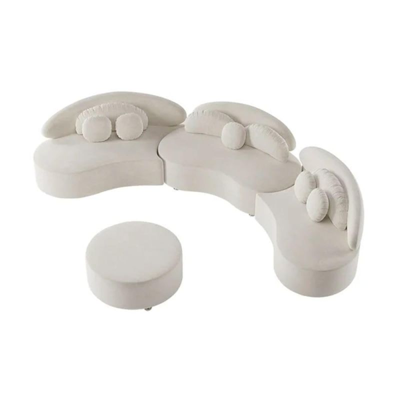 Modern Curved Sectional Sofa Set, 6 Seater, 3 Piece Sofa with Puffy and Pillow Velvet Low Seating Sofa for Living Room, Bedroom, Hallways (Beige)