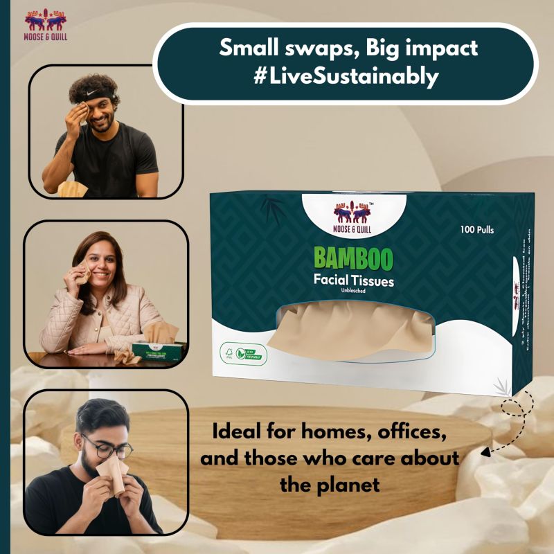 100% Bamboo Facial Tissues – Eco-Friendly & Sustainable : Crafted from pure bamboo fibers, our tissues are an eco-conscious choice that helps reduce deforestation. No trees are cut down – a gentle product for you and the planet.