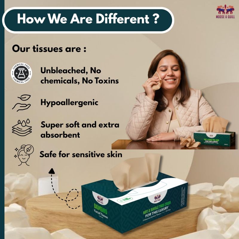 Luxury with Responsibility – Perfect for Every Home : Combining luxury softness with eco-friendly responsibility, Moose & Quill Bamboo Facial Tissues are a sustainable alternative to paper tissues, great for home, office, or travel.