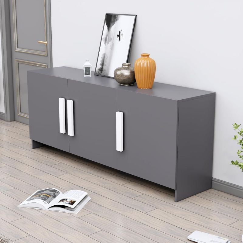 Multipurpose Storage Cabinet for Living Room, Kitchen, Office, Sideboard Cabinet with 3 Door Storage (Slate Grey)