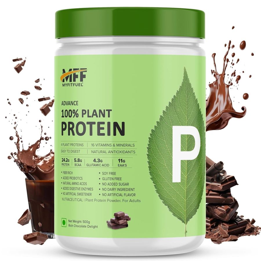 MyFitFuel Advance 100% Plant Protein (4 Plant Proteins, 16 Vitamins & Minerals, Easy to Digest), 1 Kg, Rich Chocolate Delight