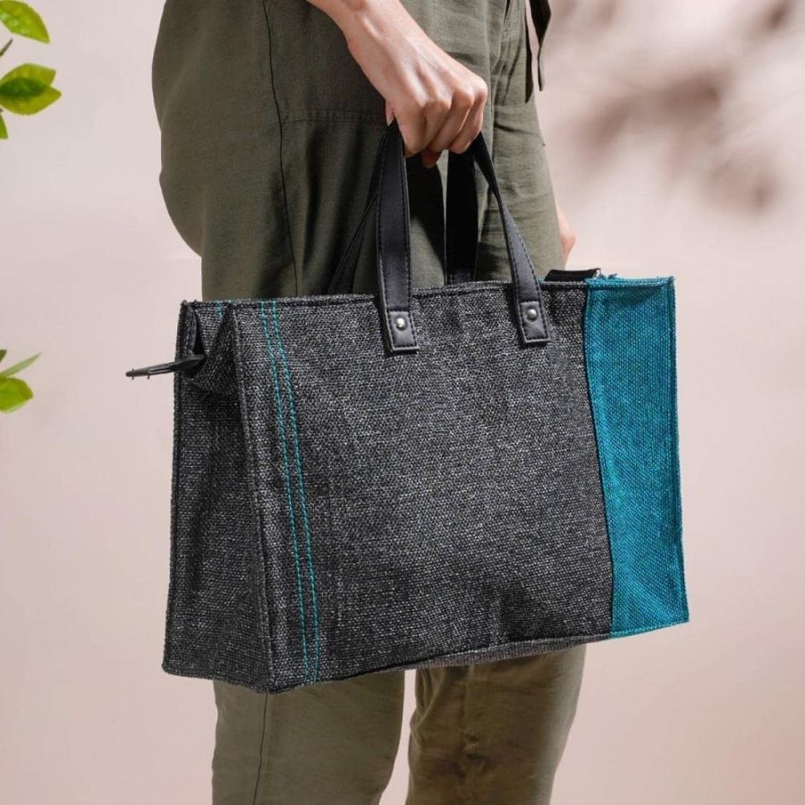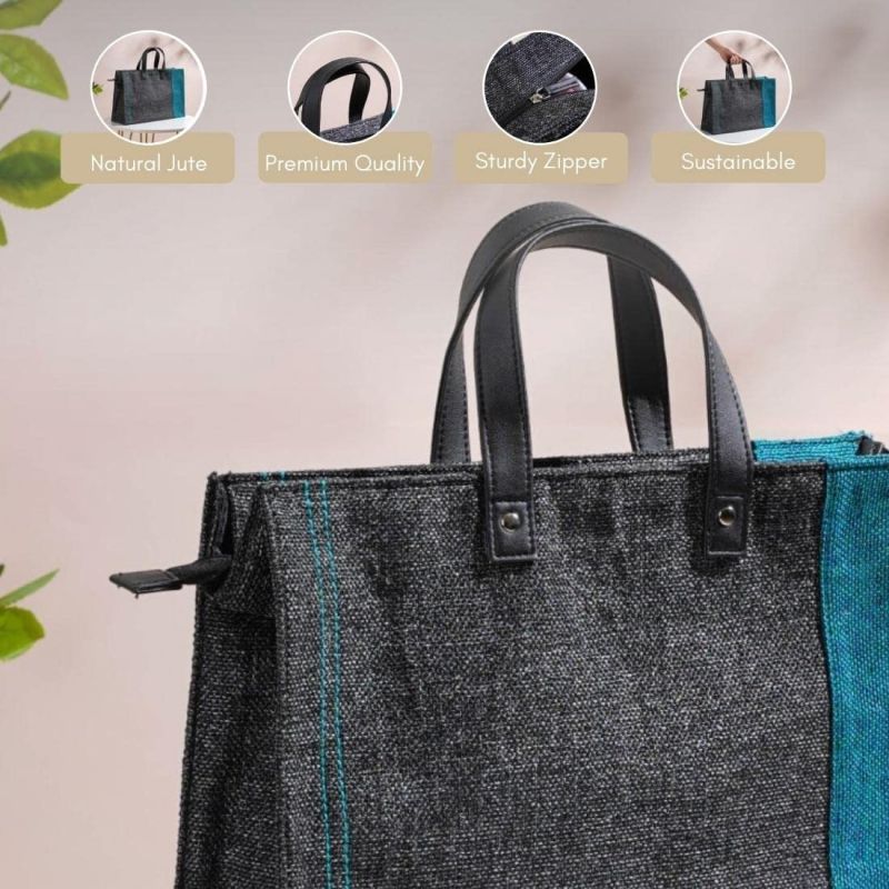 Stylish & Sustainable Design – Made from eco-friendly 100% high-quality jute with a chic black & teal color block, this lunch bag blends everyday functionality with conscious, fashionable living.
