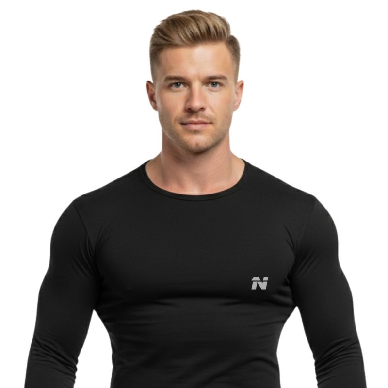 NINQ Men’s Full Sleeve Gym Compression T-Shirt Dry Fit Polyester Blend Slim Fit Athletic Wear for Running and Fitness