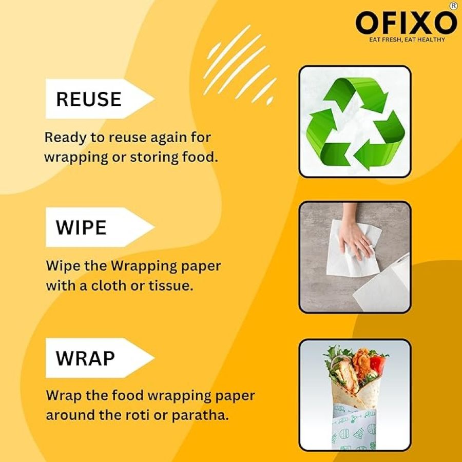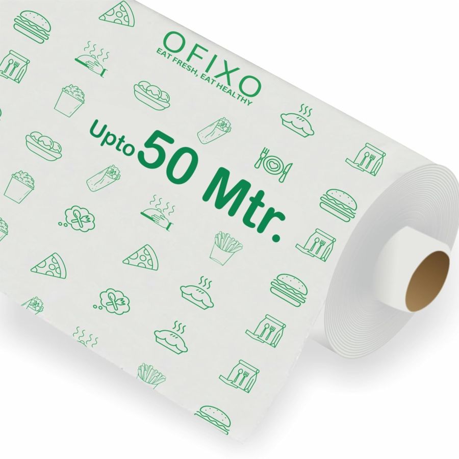 OFIXO 50 Meters (500 Gram) Food Wrapping Roll - Premium Non-Stick Butter Wrapping. Food Wrapping, Re-heatable, Oven Safe Parchment