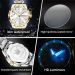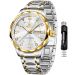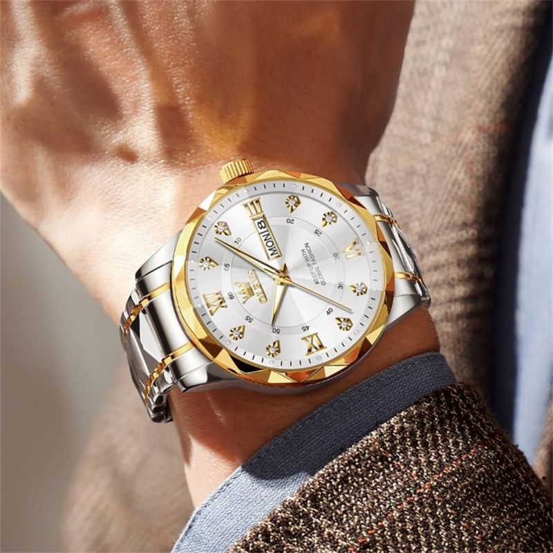 OLEVS Men's Business Watch Gold Blue with Large Easy-Read Analog Quartz Date Display Luxury Stainless Steel Band Waterproof Luminous Hands