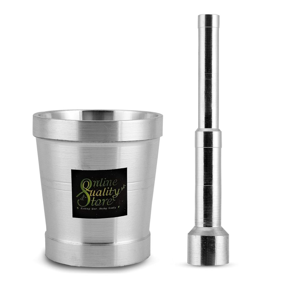 Online Quality Store Kitchen Khalbatta Okhli Masher |Mortar and Pestle Set |Aluminium Khal Batta|Imam dasta |Okhli|Musal|Khallad