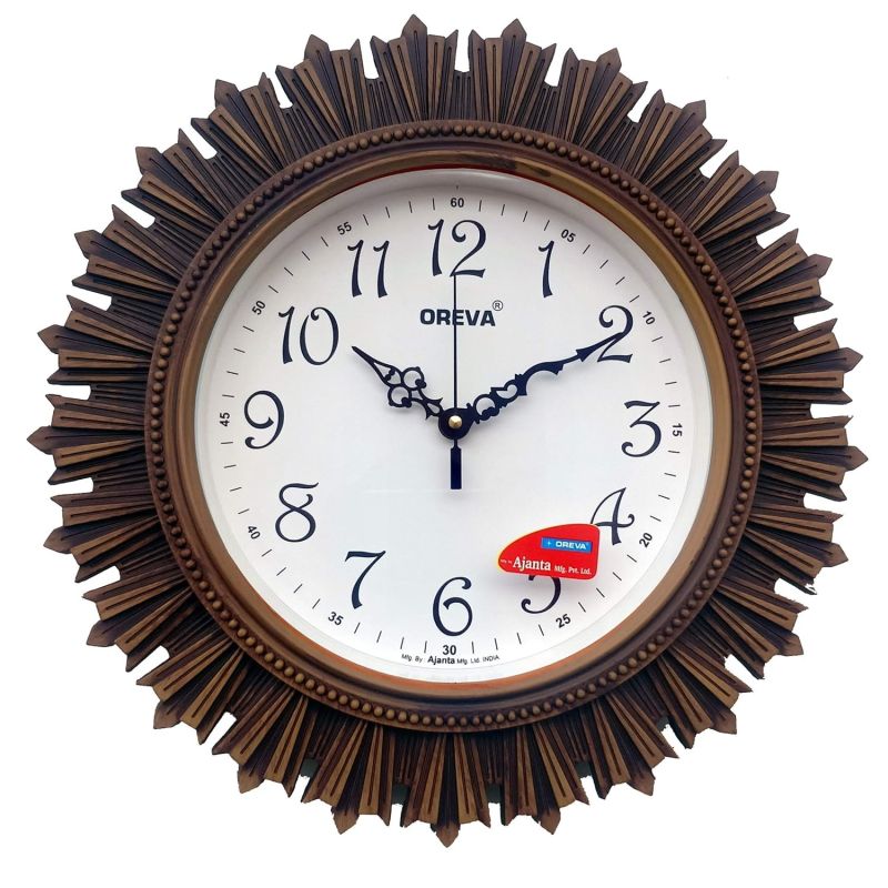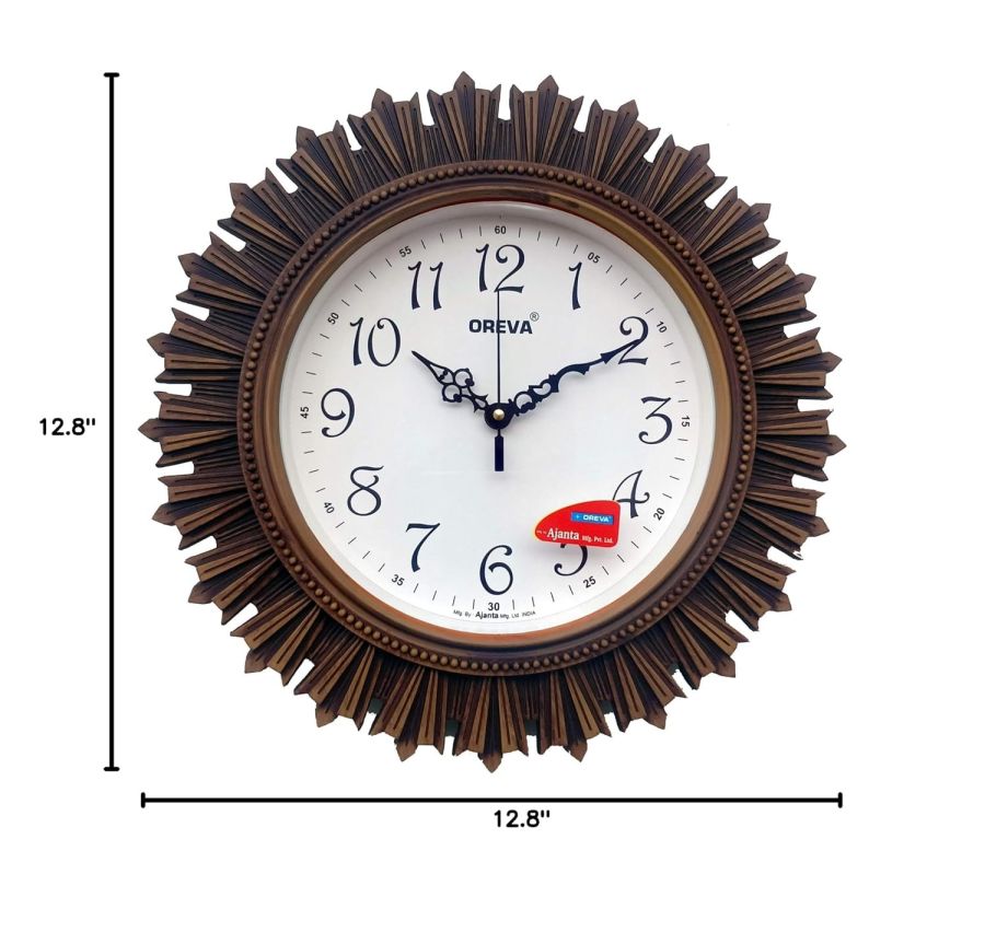 Oreva Aq 6197 Plastic Wooden Look Designer Wall Clock (32.5 X 32.5 X 4.8 Cm), Brown - Analog