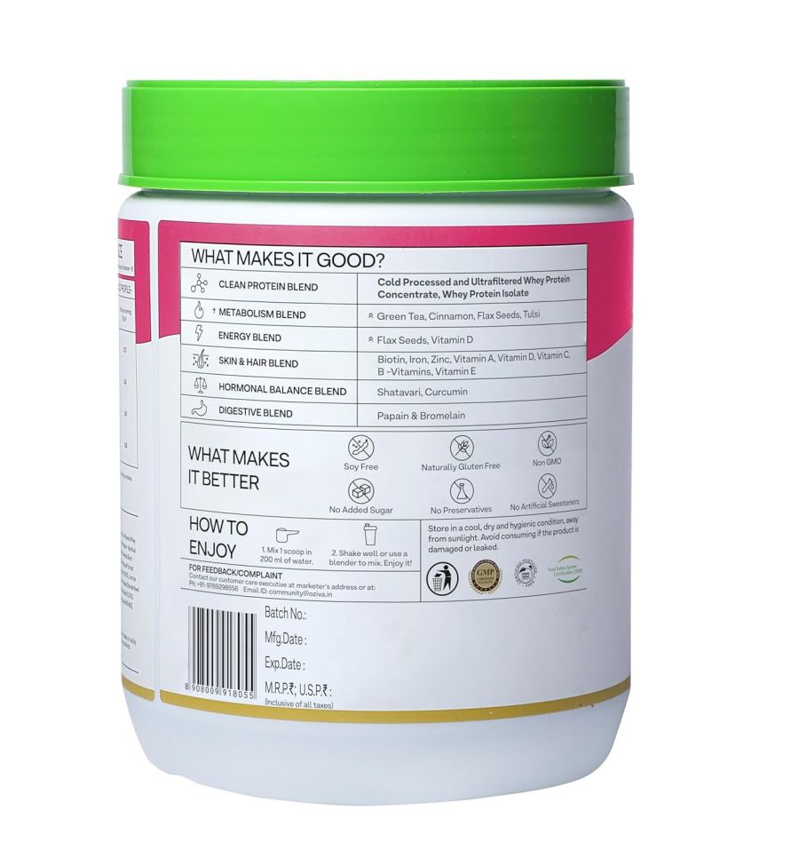 OZiva Protein & Herbs for Women, Chocolate, 16 Servings, 0g added Sugar